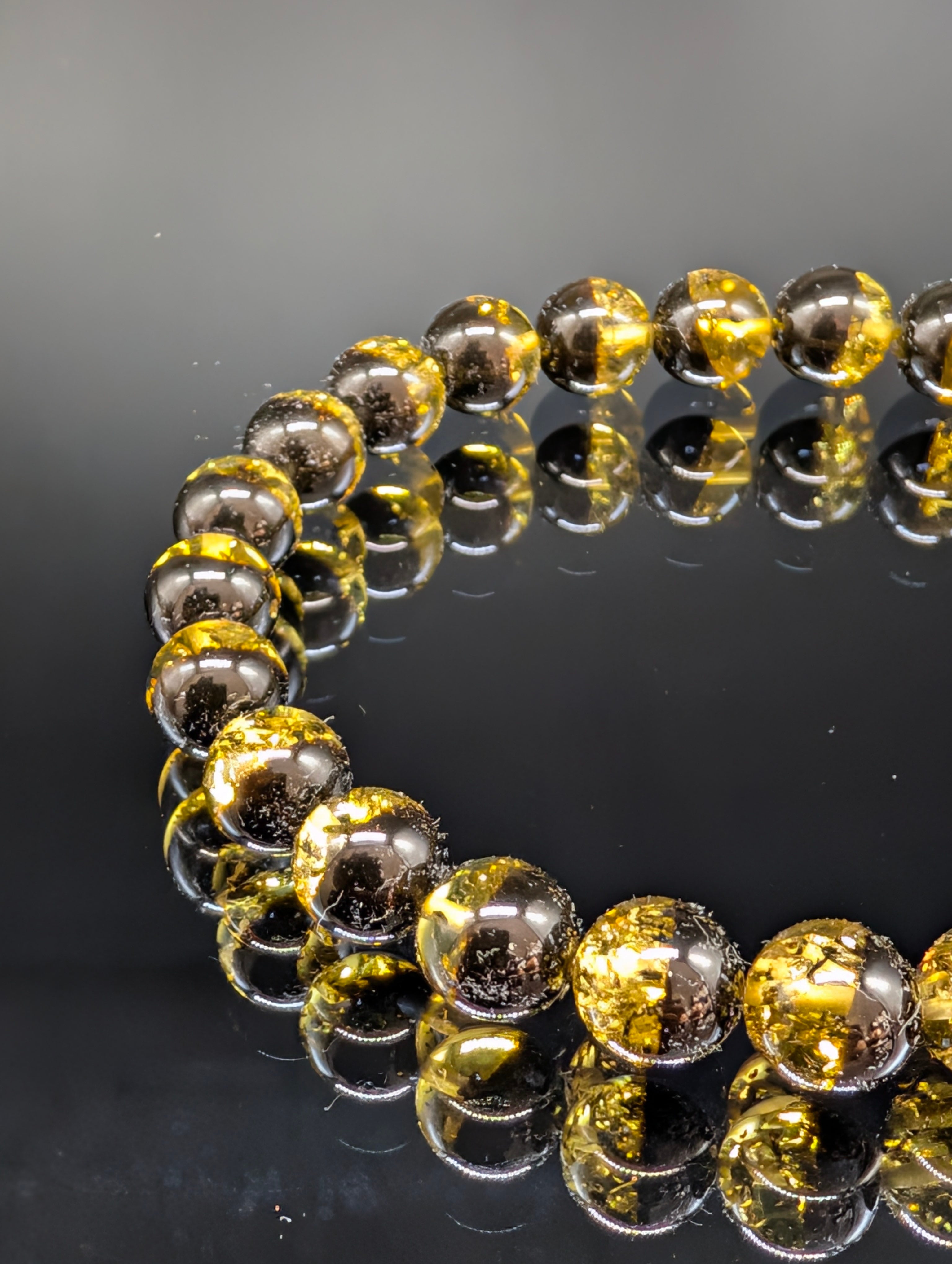 【パワーストーン】アンバー・天然琥珀(ブラックイエロー・ツインカラー)・8.5mm・ブレスレット 【最高品質・希少・金運健康】