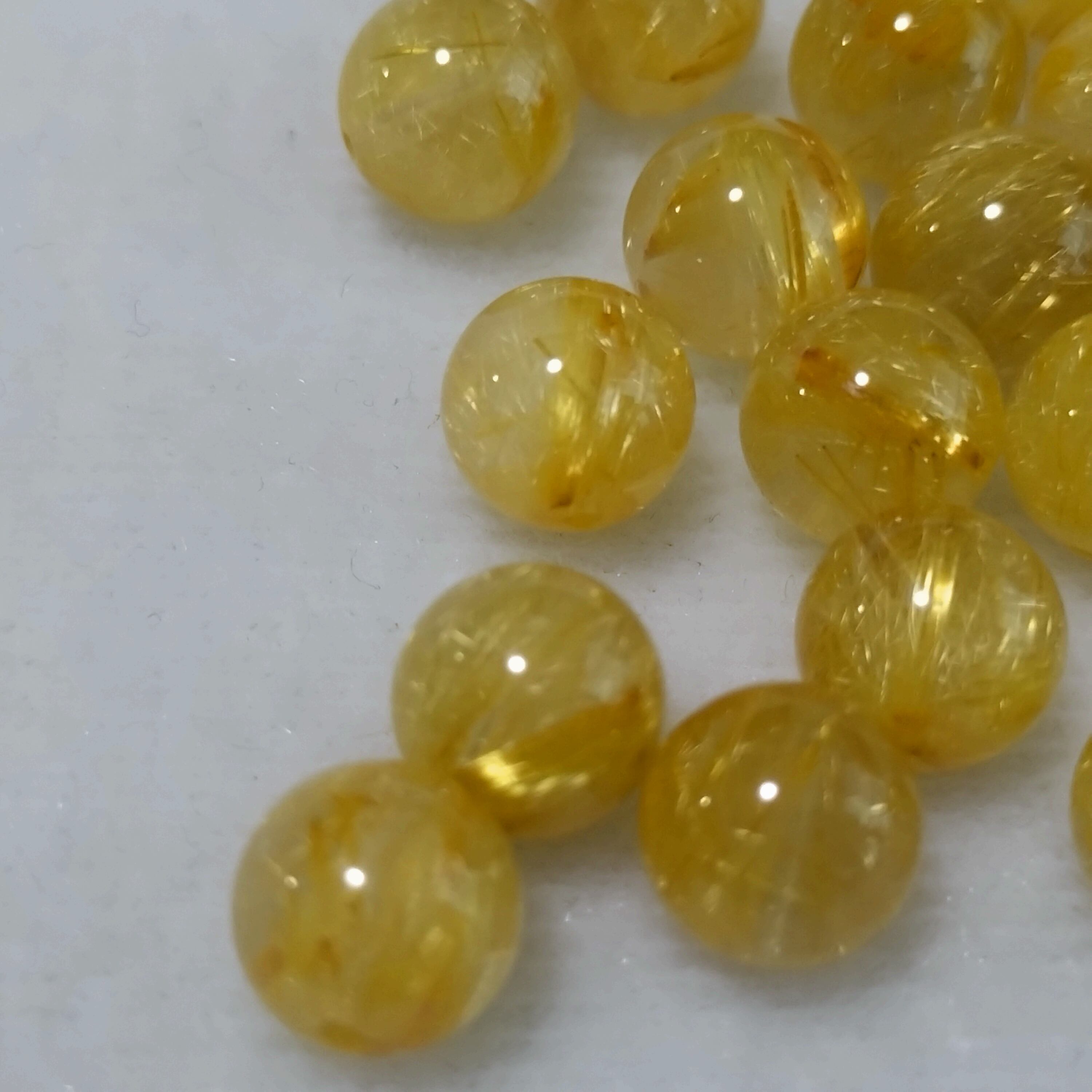 今回、ゴールドルチルクォーツ。8.5mmの入荷がございました。とても綺麗なゴールドルチルクォーツです。