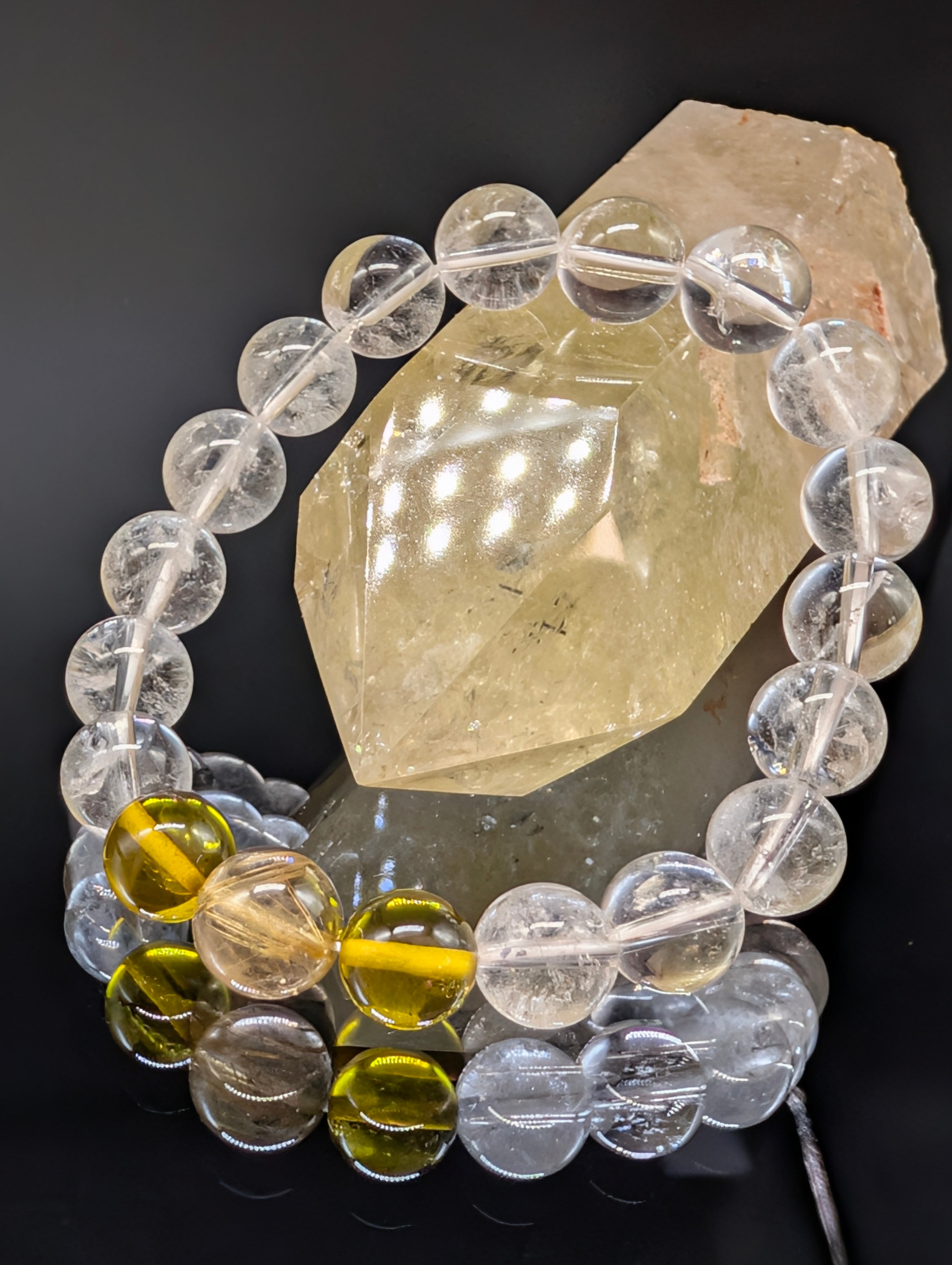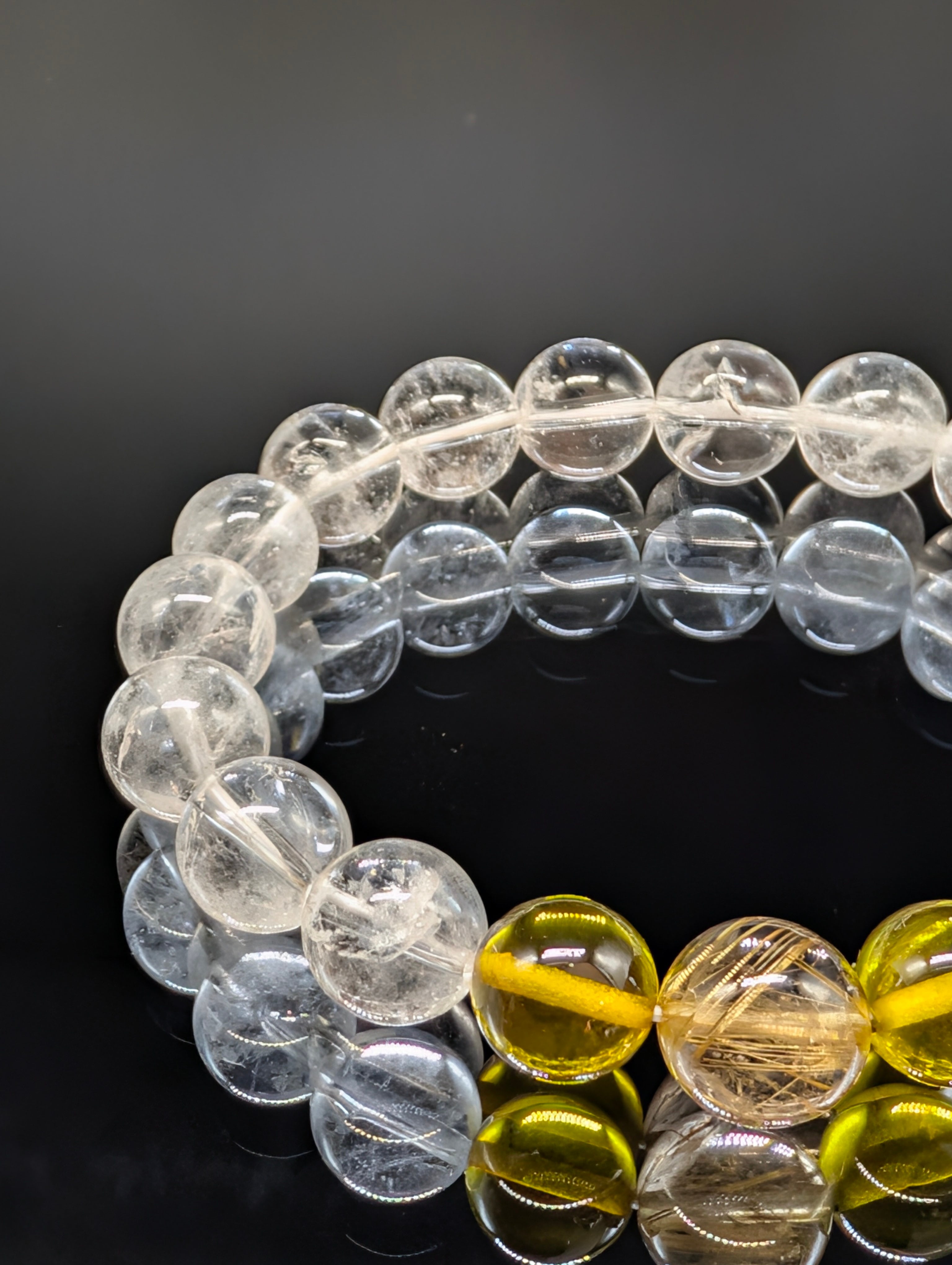 【パワーストーン】ルチルクォーツ・グリーンアンバー(天然琥珀)・カンチェンジュンガ水晶・10mm・ブレスレット 【金運財運・大願成就・健康・開運】