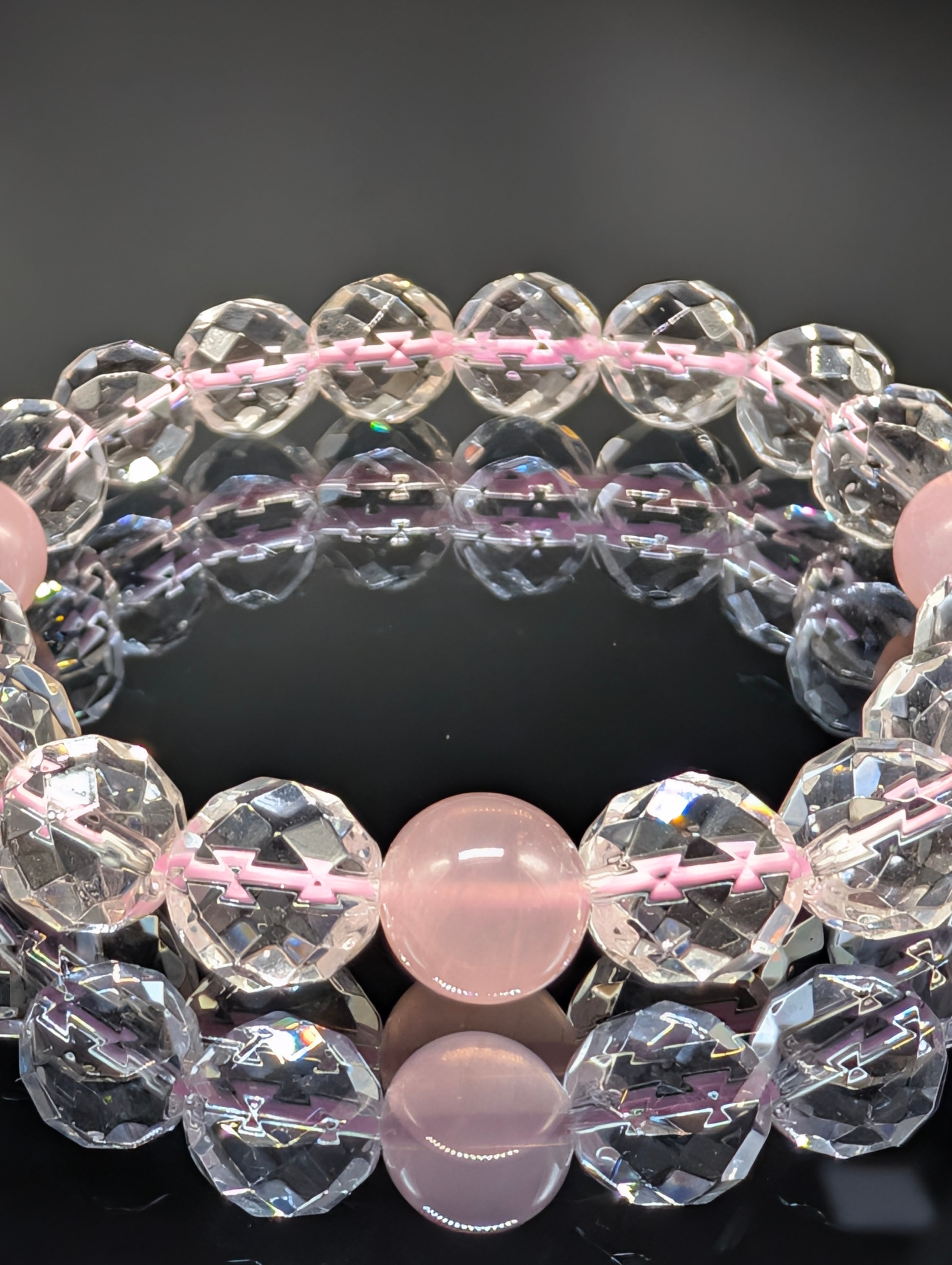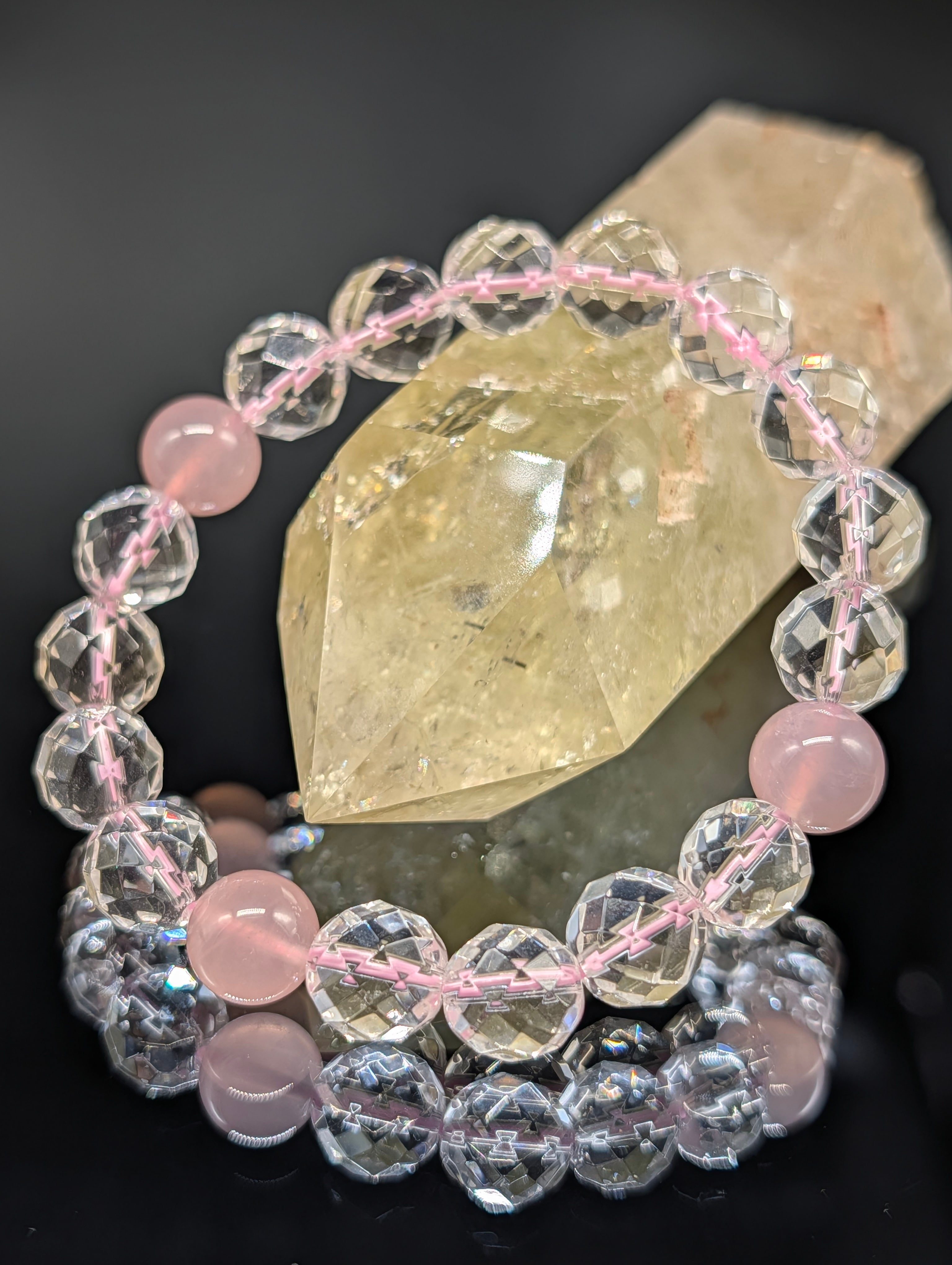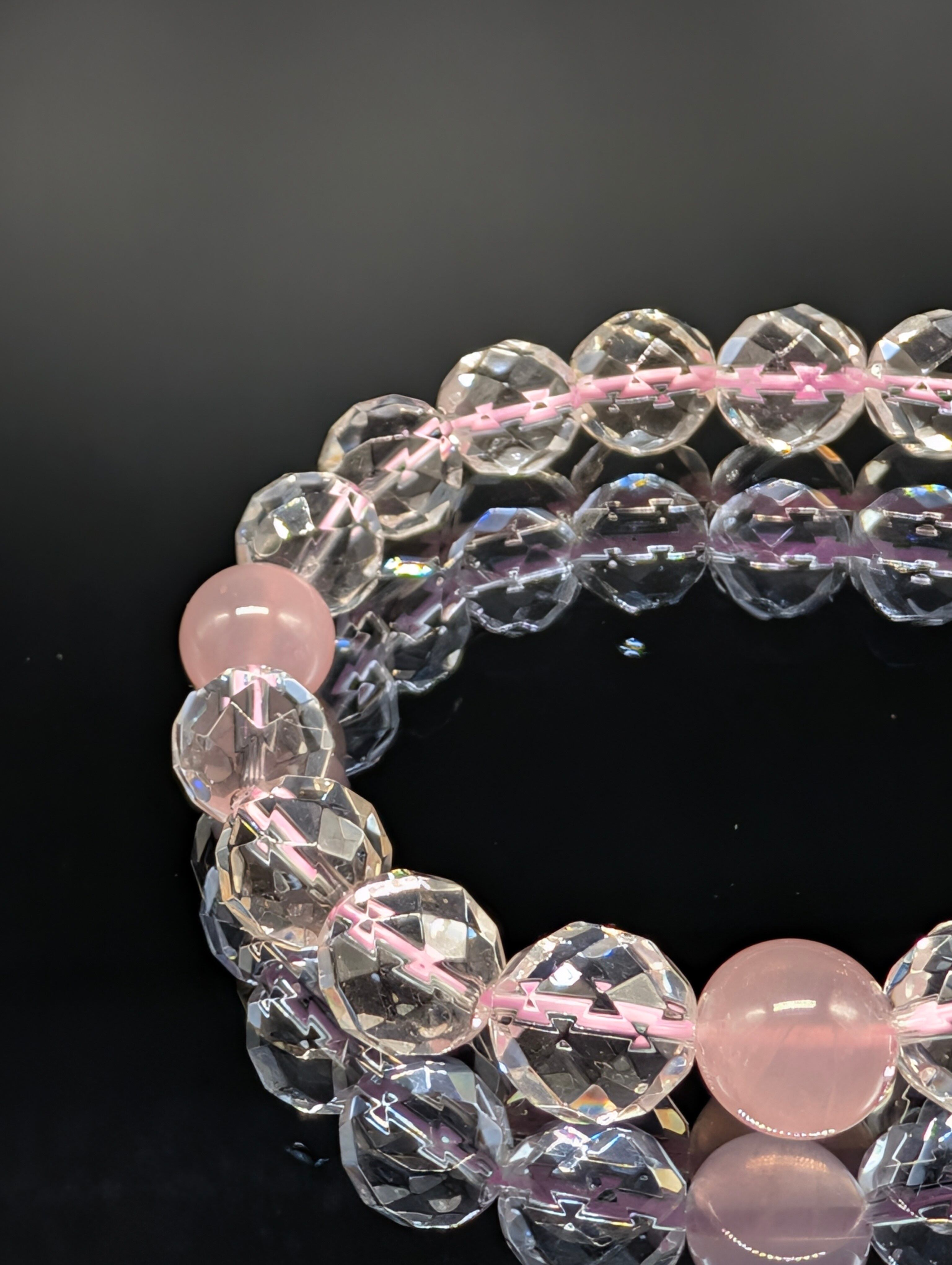 【パワーストーン】ローズクォーツ 水晶(64面カット) 10mm ブレスレット 【恋愛・良縁】