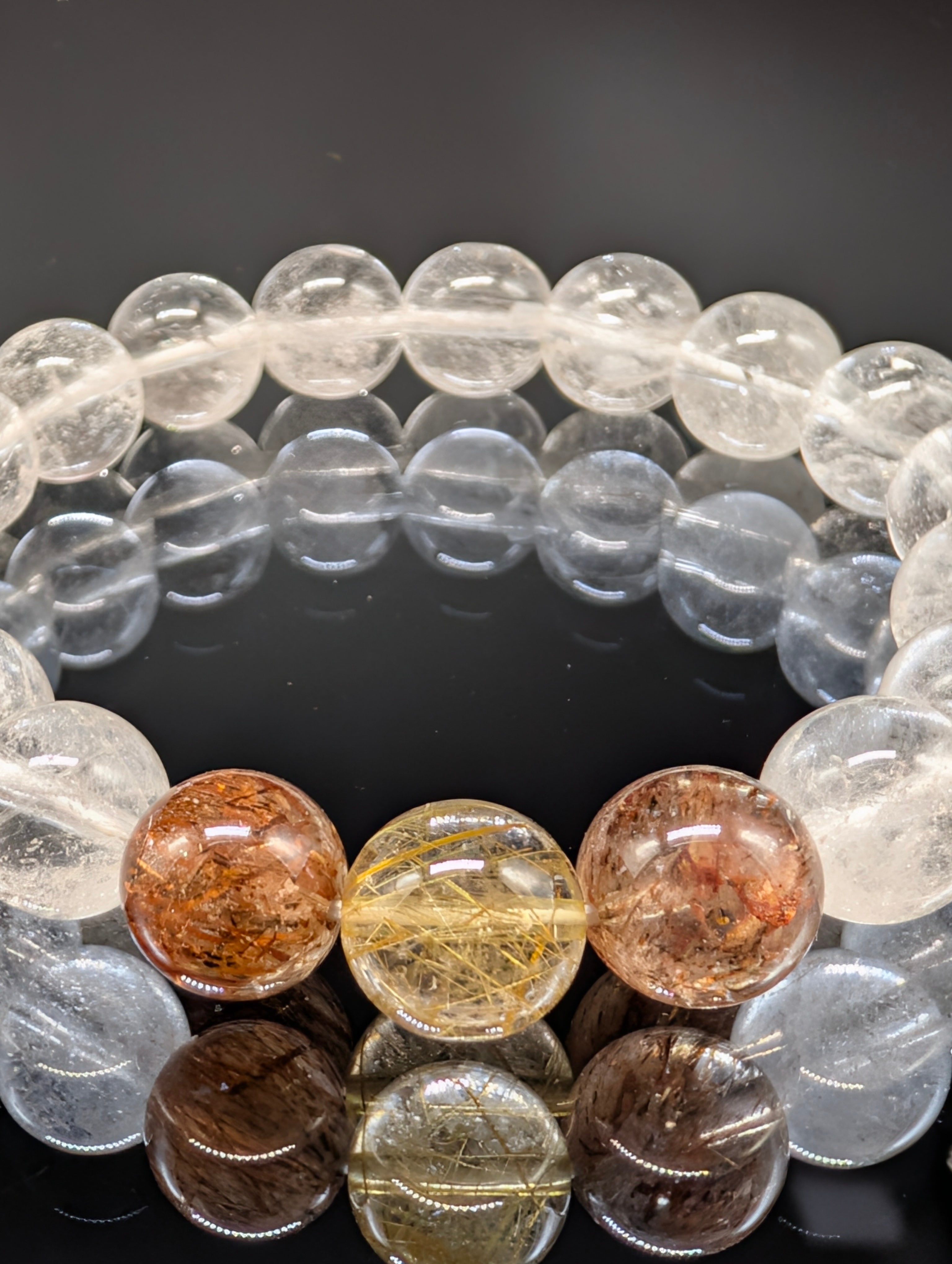 【パワーストーン】ルチルクォーツ ブラウンルチル ヒマラヤ水晶(カンチェンジュンガ) 10mm 3連 ブレスレット 【高品質・金運・開運・願望実現】