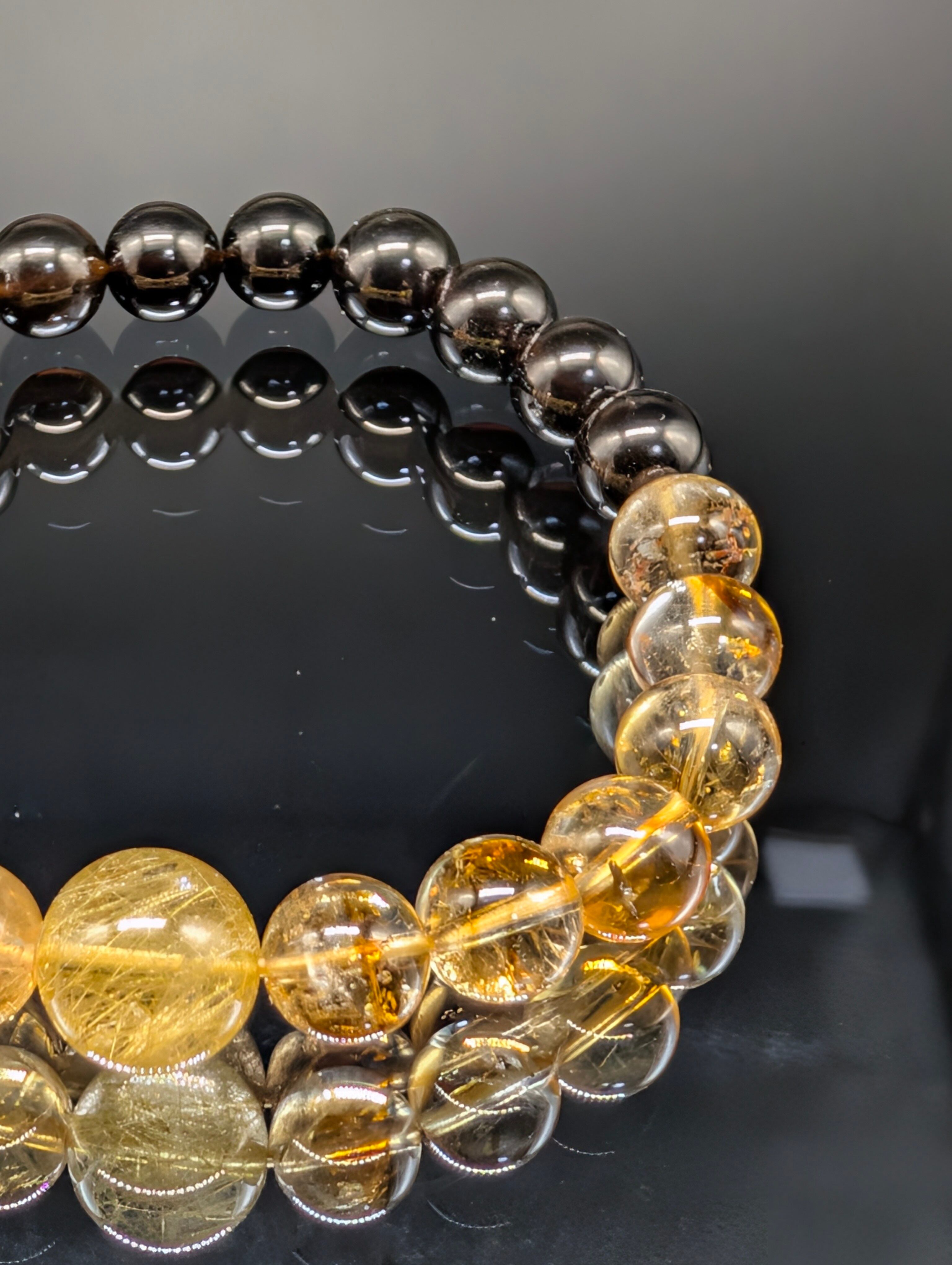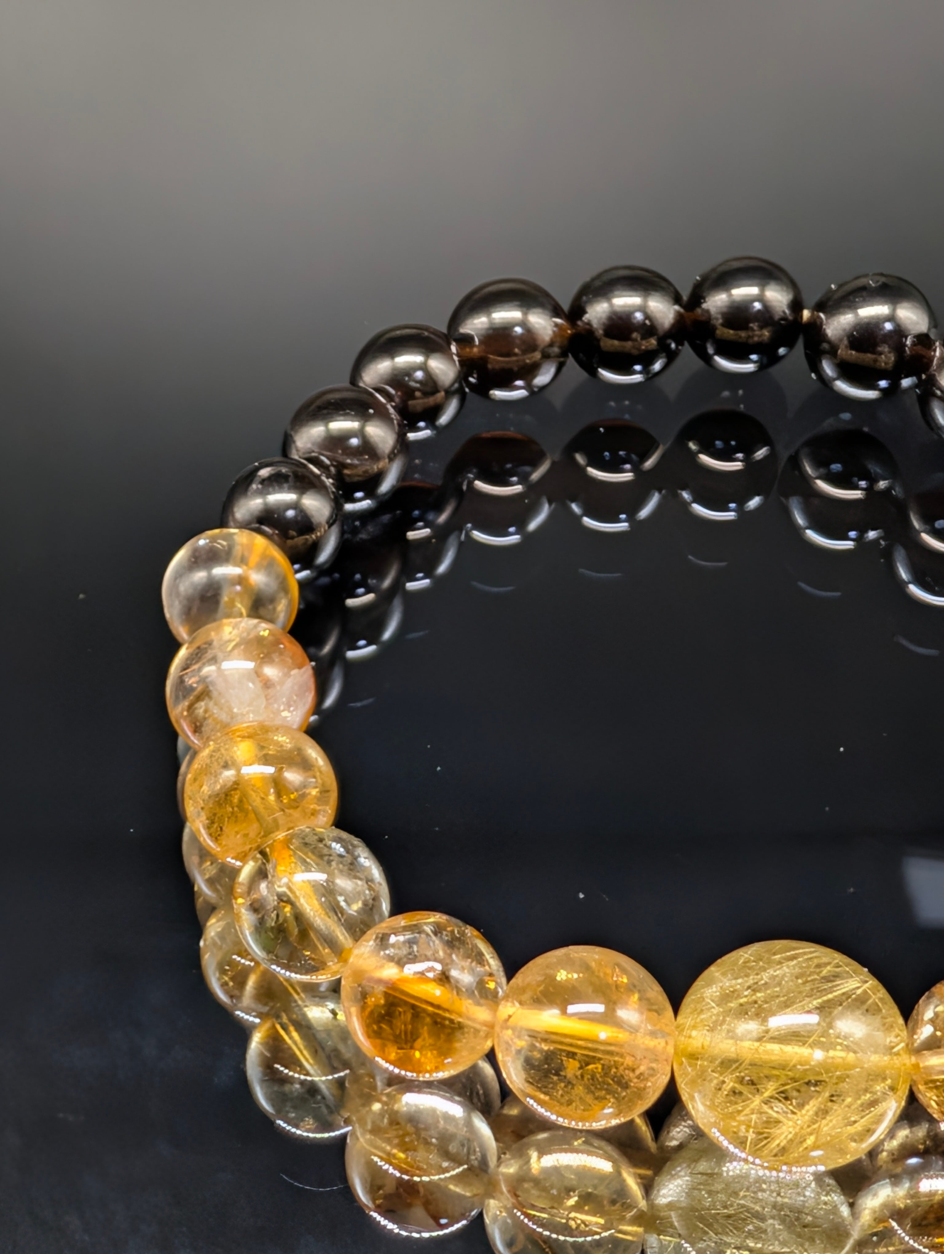 【パワーストーン】ルチルクォーツ ファントムシトリン モリオン 8mm 親玉10mm ブレスレット 【金運上昇・守護・願望実現・高品質・鑑別済み】