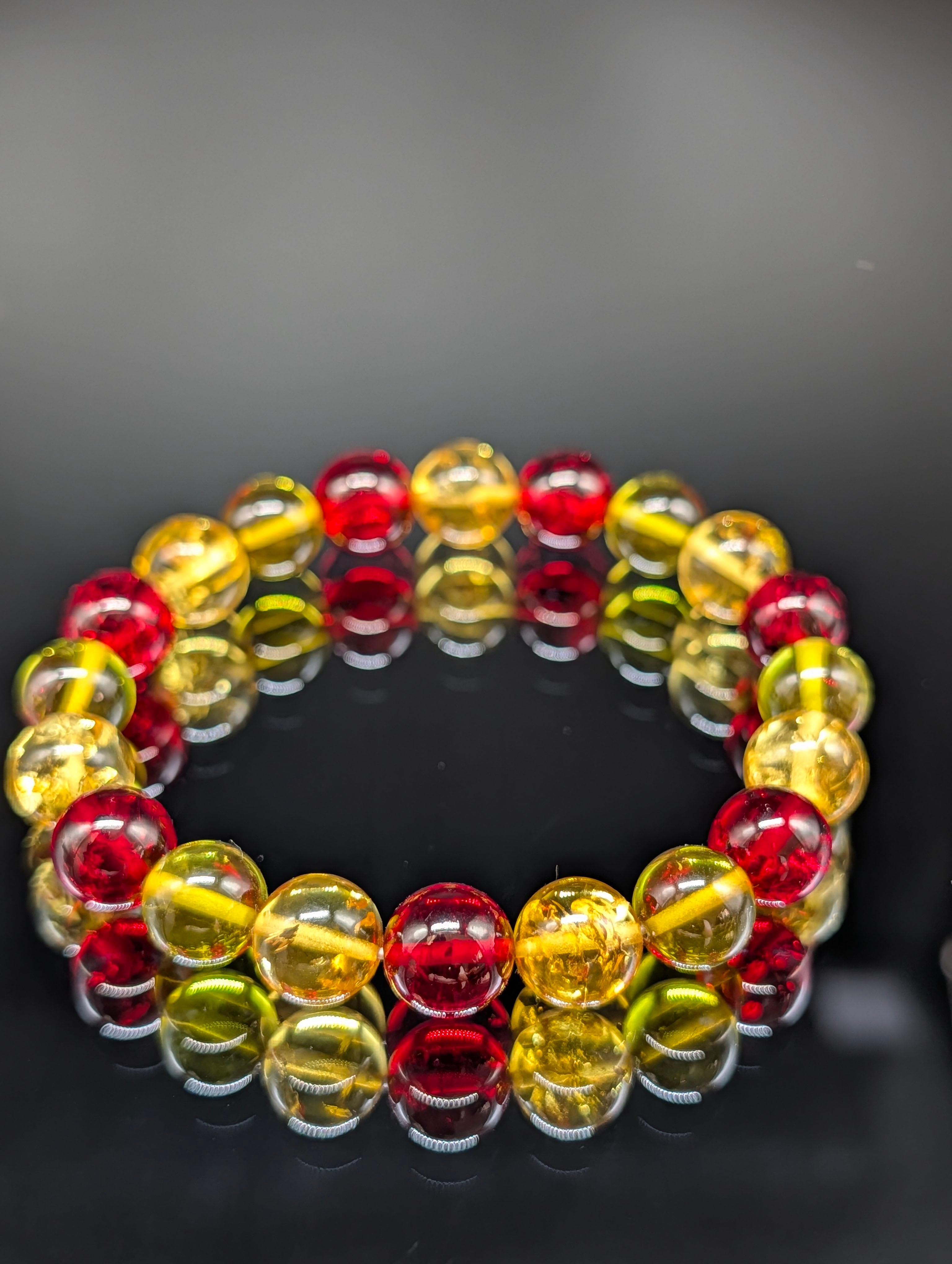 【パワーストーン】アンバー(琥珀) イエロー・レッド・グリーン 10mm ブレスレット 【天然琥珀・健康・金運上昇・希少】