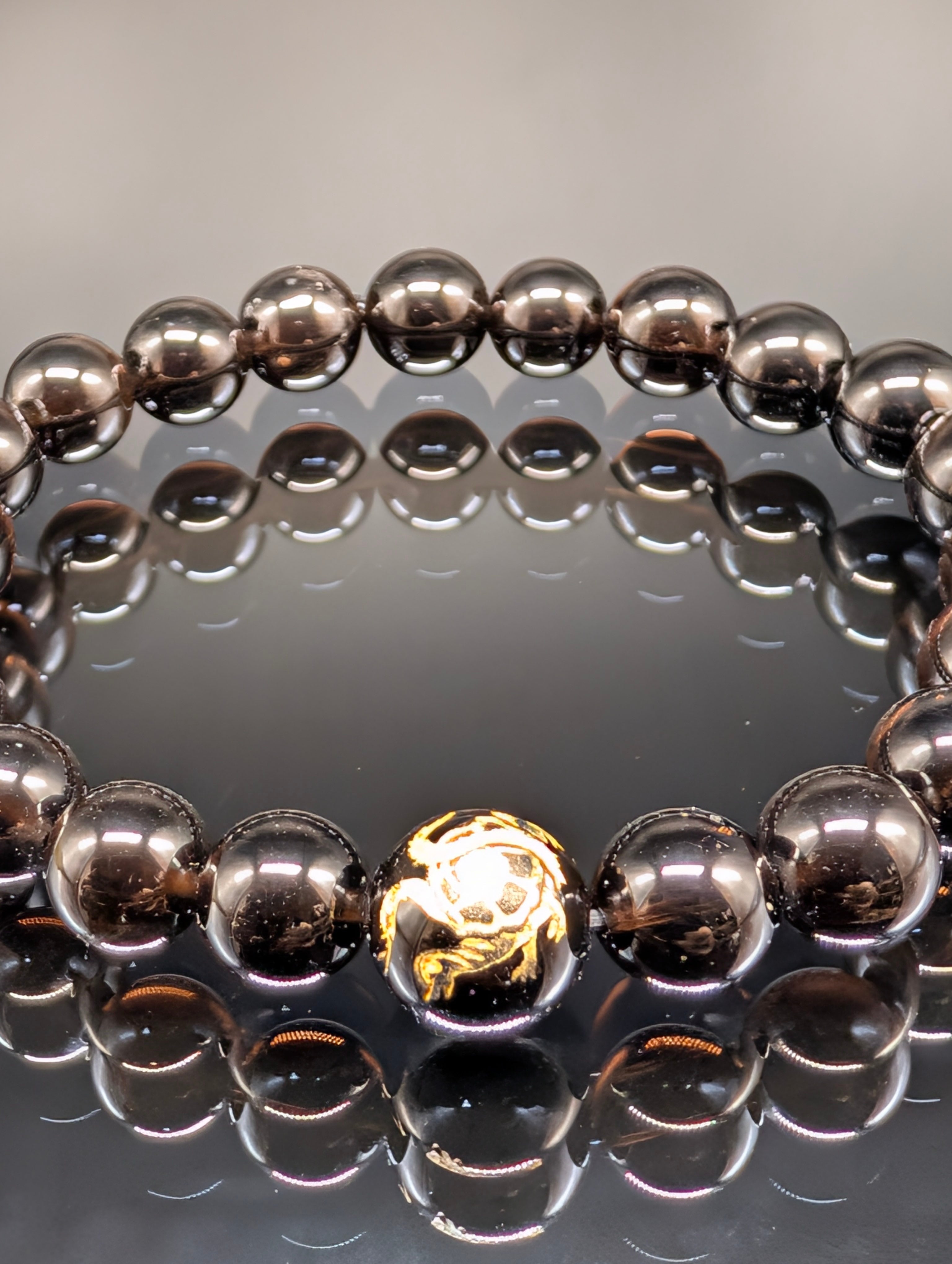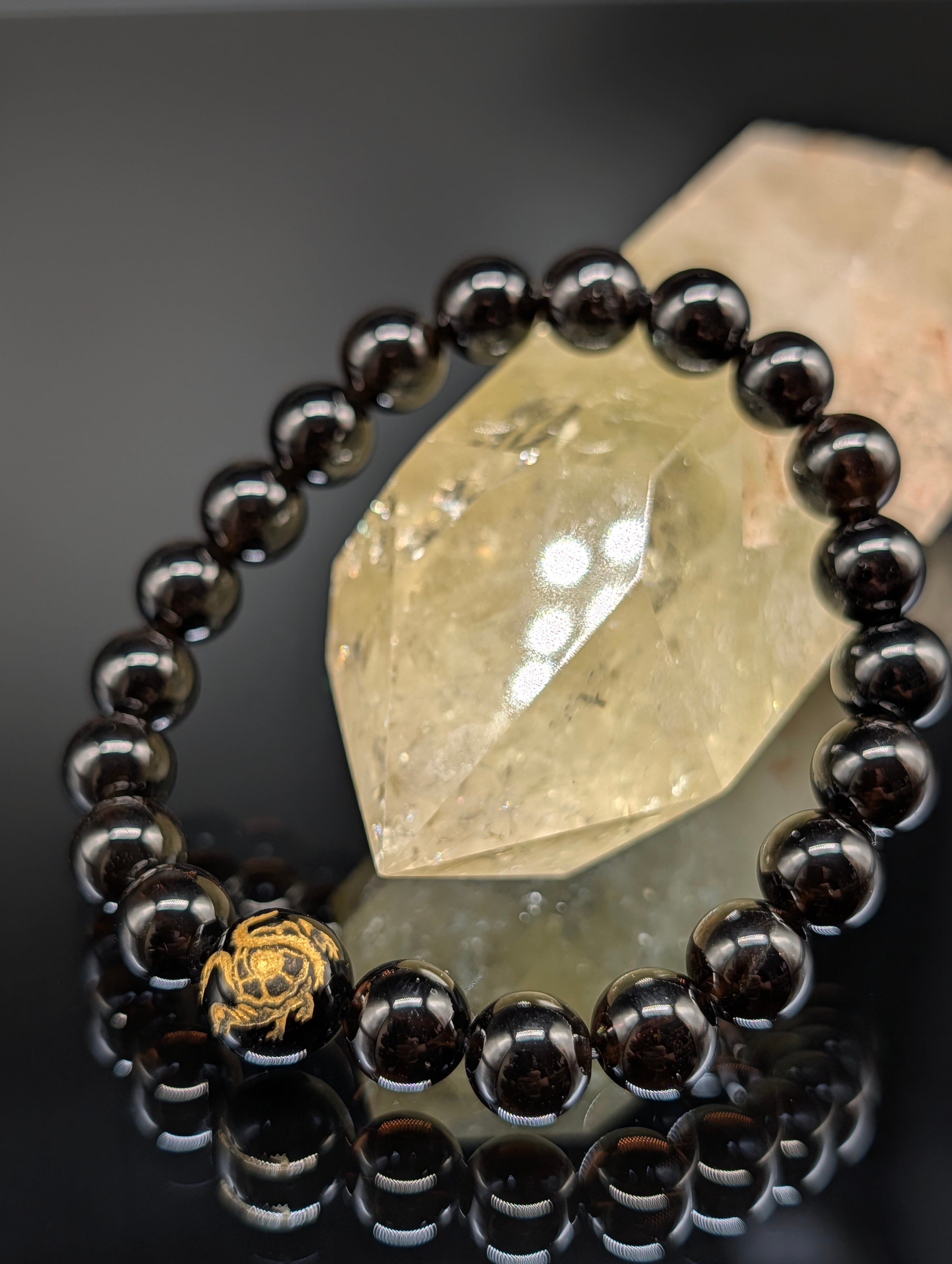 【パワーストーン】モリオン 彫刻オニキス(玄武) 8mm 親玉10mm ブレスレット 【最強守護・厄除け・金運・鑑別済み】