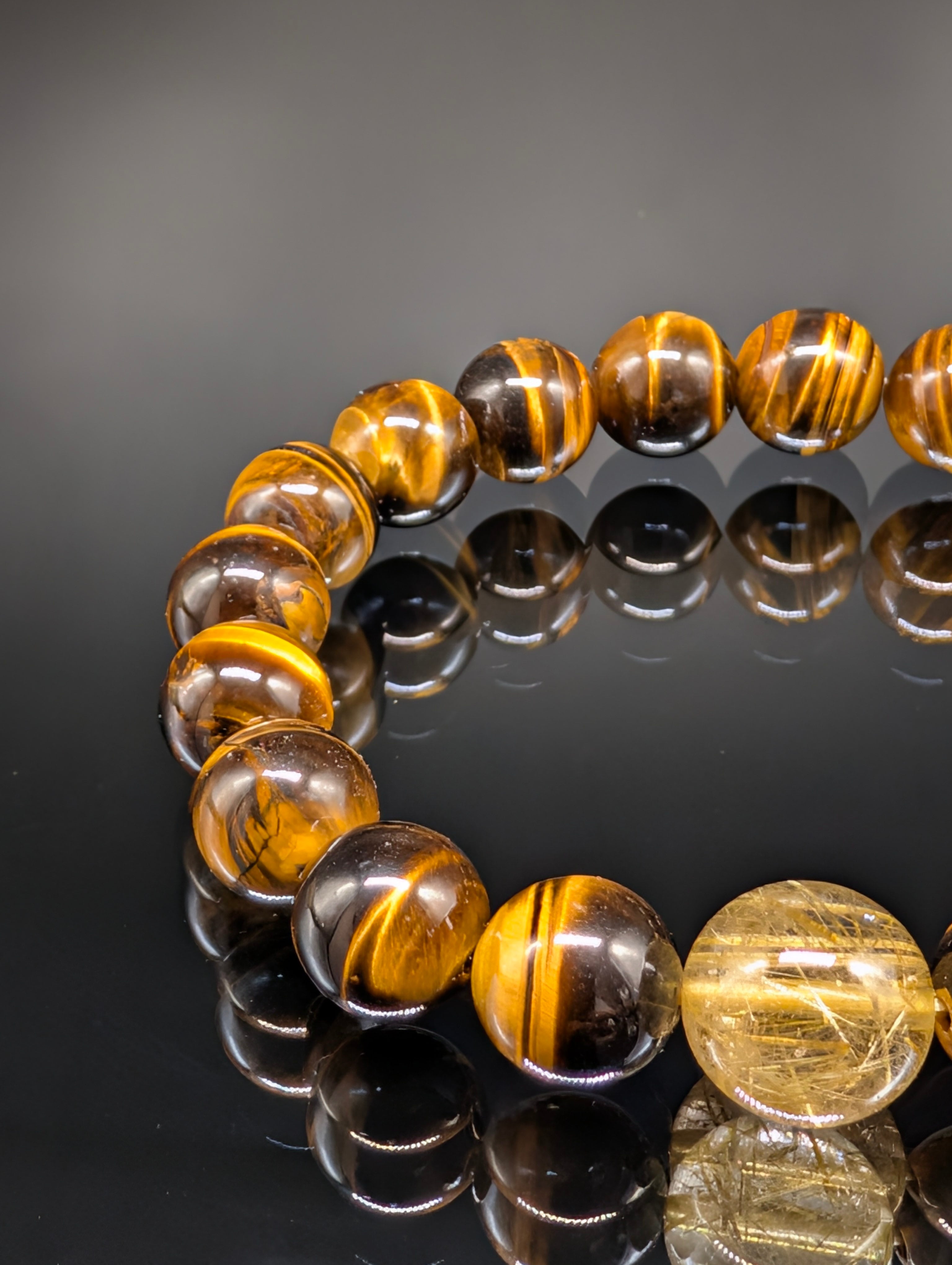 【パワーストーン】ルチルクォーツ・イエロータイガーアイ 10mm 高品質 ブレスレット【幸運・金運財運・願望実現・直感力】