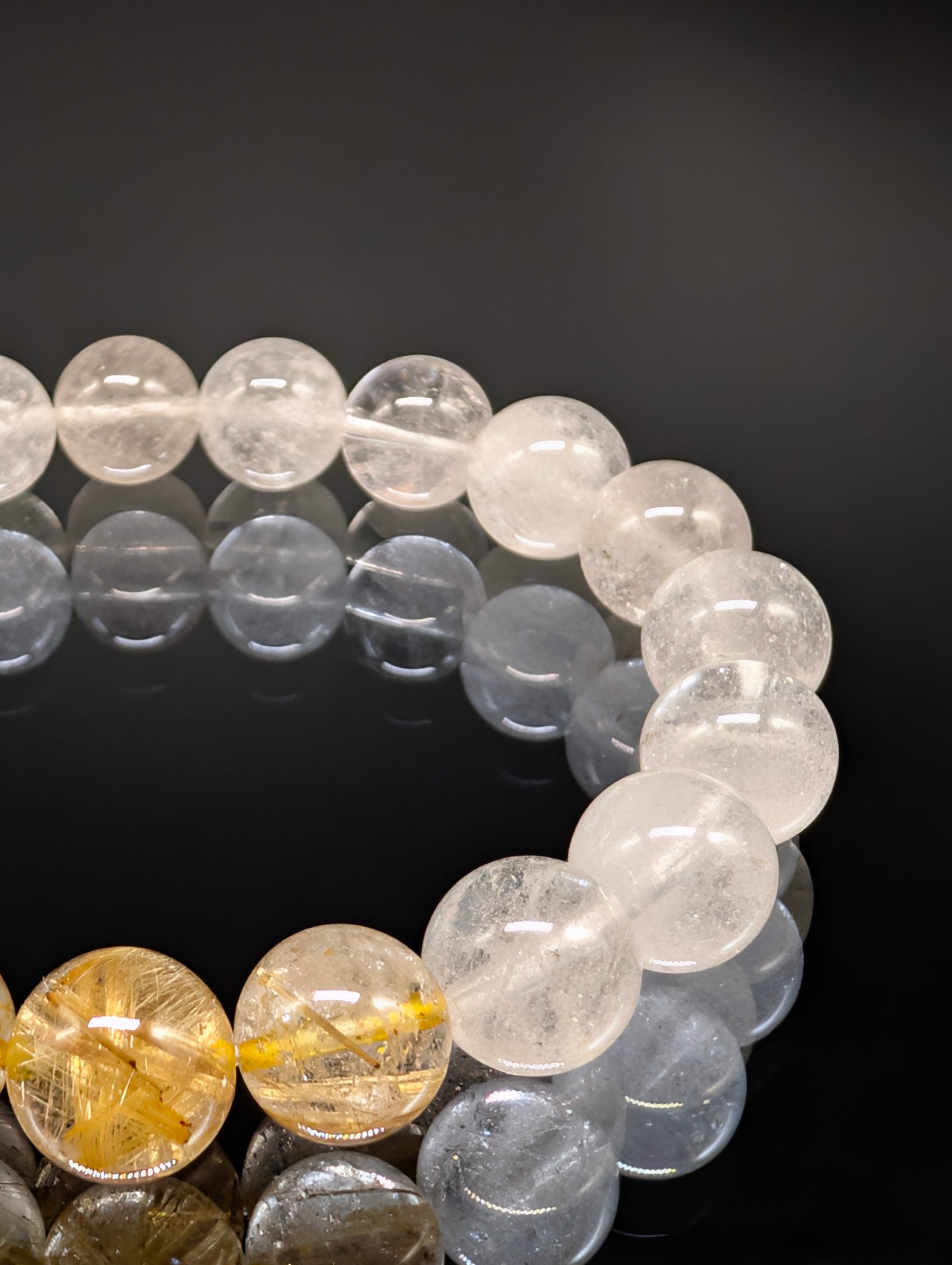 【パワーストーン】タイチンルチルクォーツ ヒマラヤ水晶(カンチェンジュンガ) 三連 10mm 高品質 ブレスレット 【開運・金運財運・願望実現・浄化】