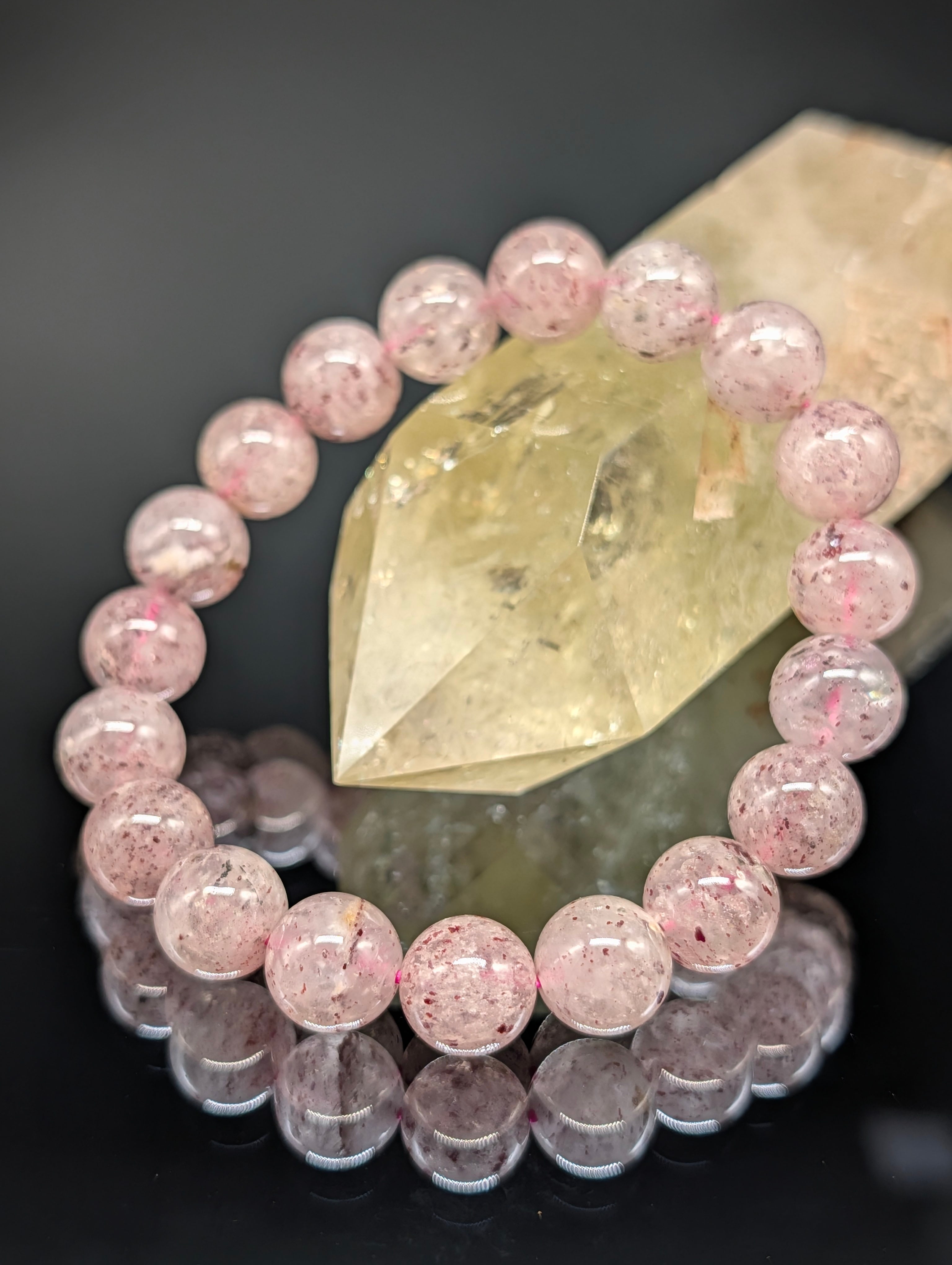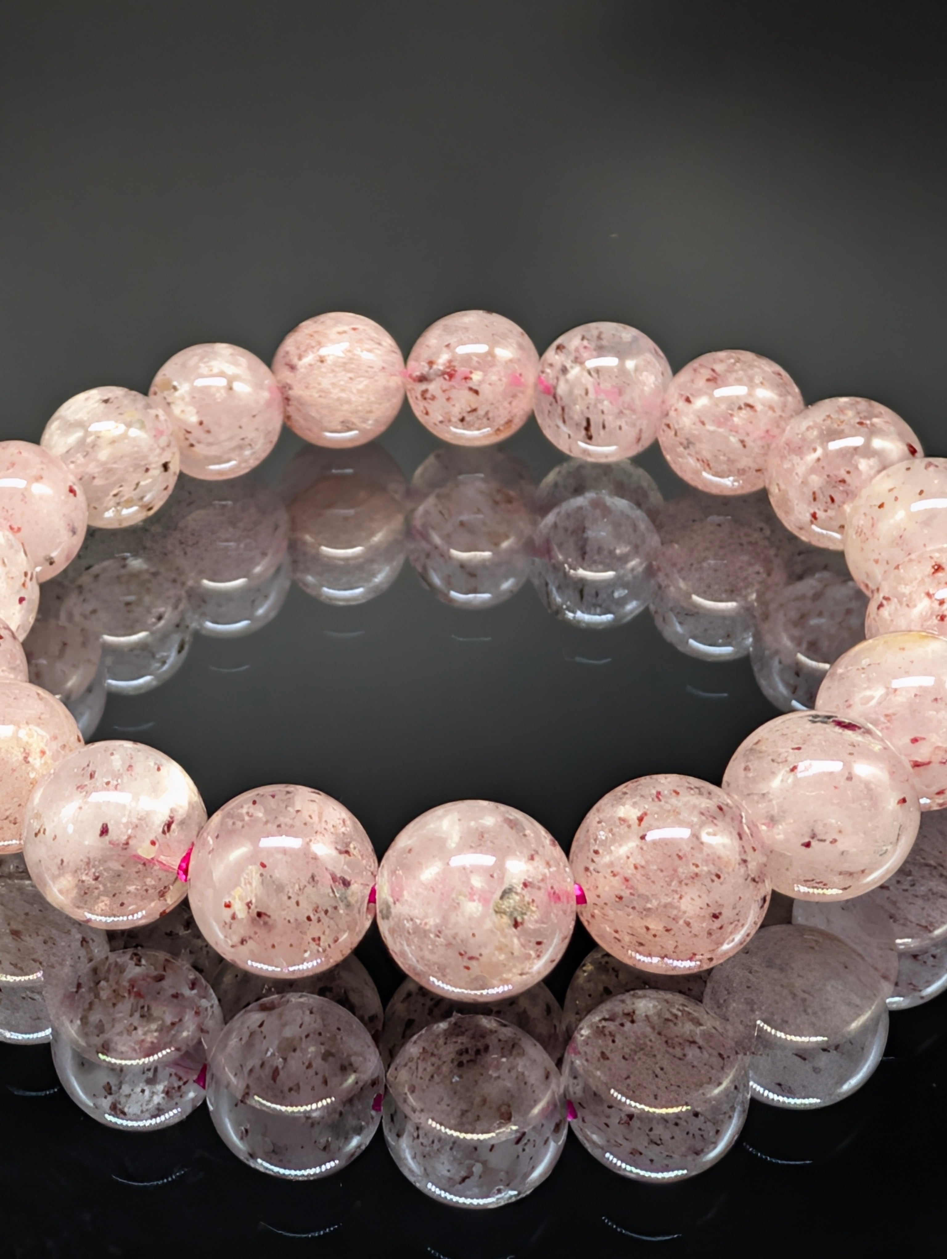 見た目の色合いも優しいストロベリーの様な色味で癒される石です。