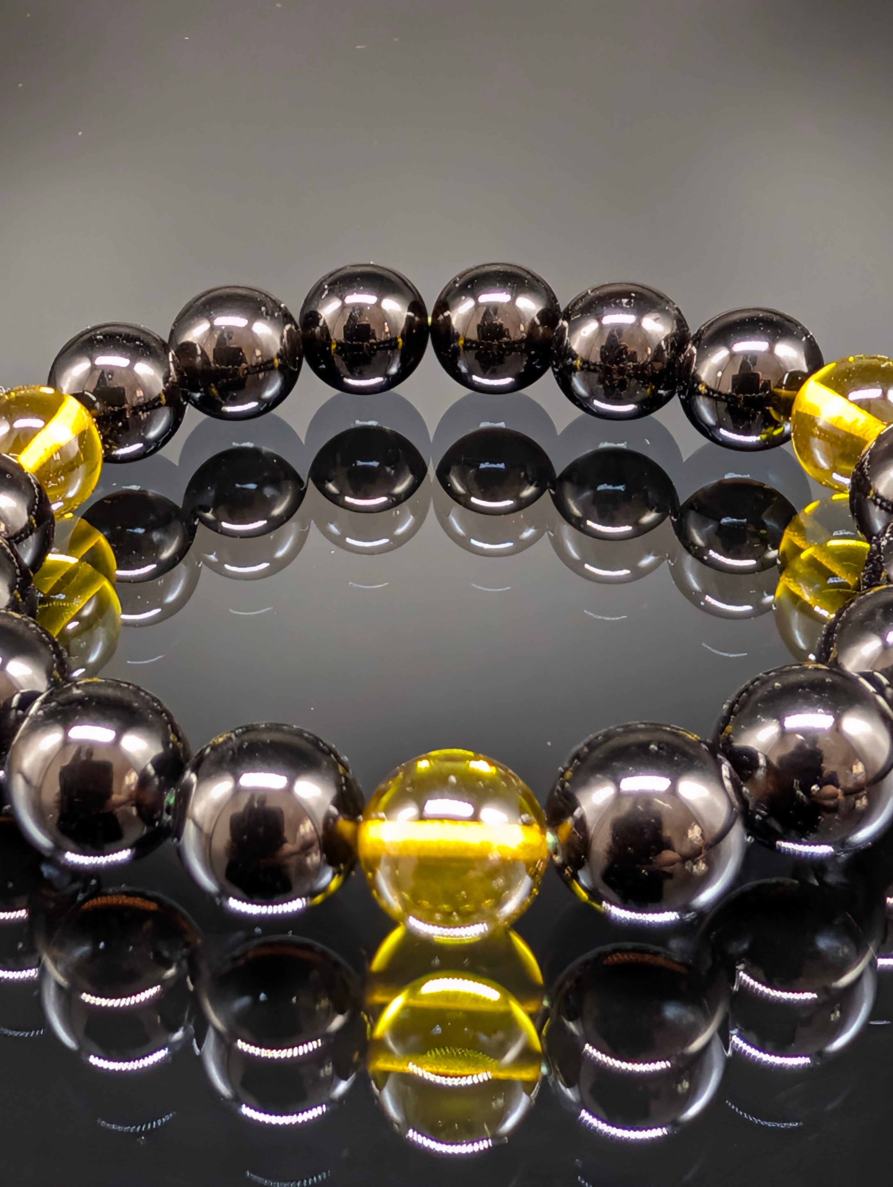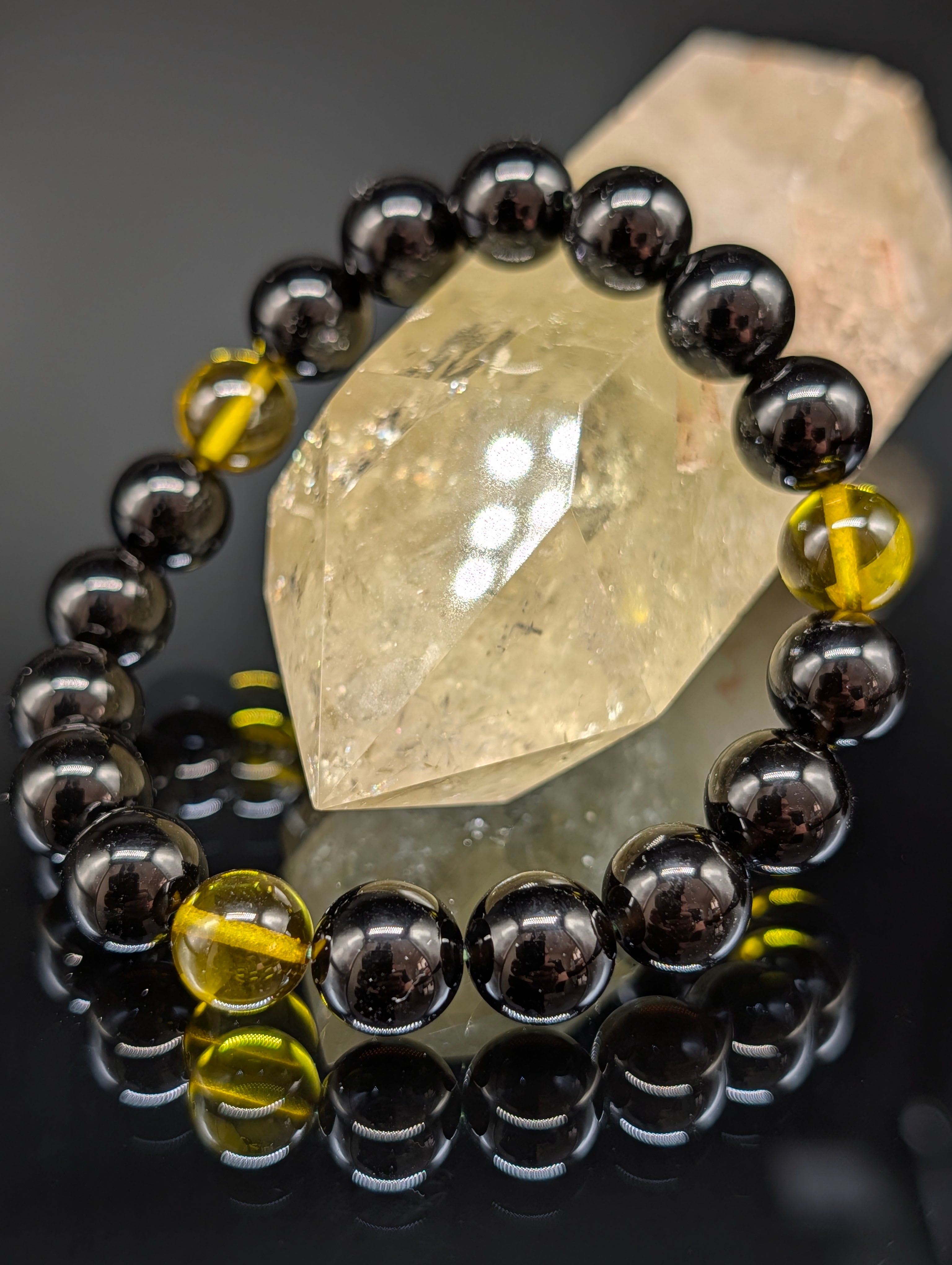 【パワーストーン】グリーンアンバー(天然琥珀) モリオン 10mm 【金運上昇・健康・厄除け・鑑別済み・高品質】ブレスレット