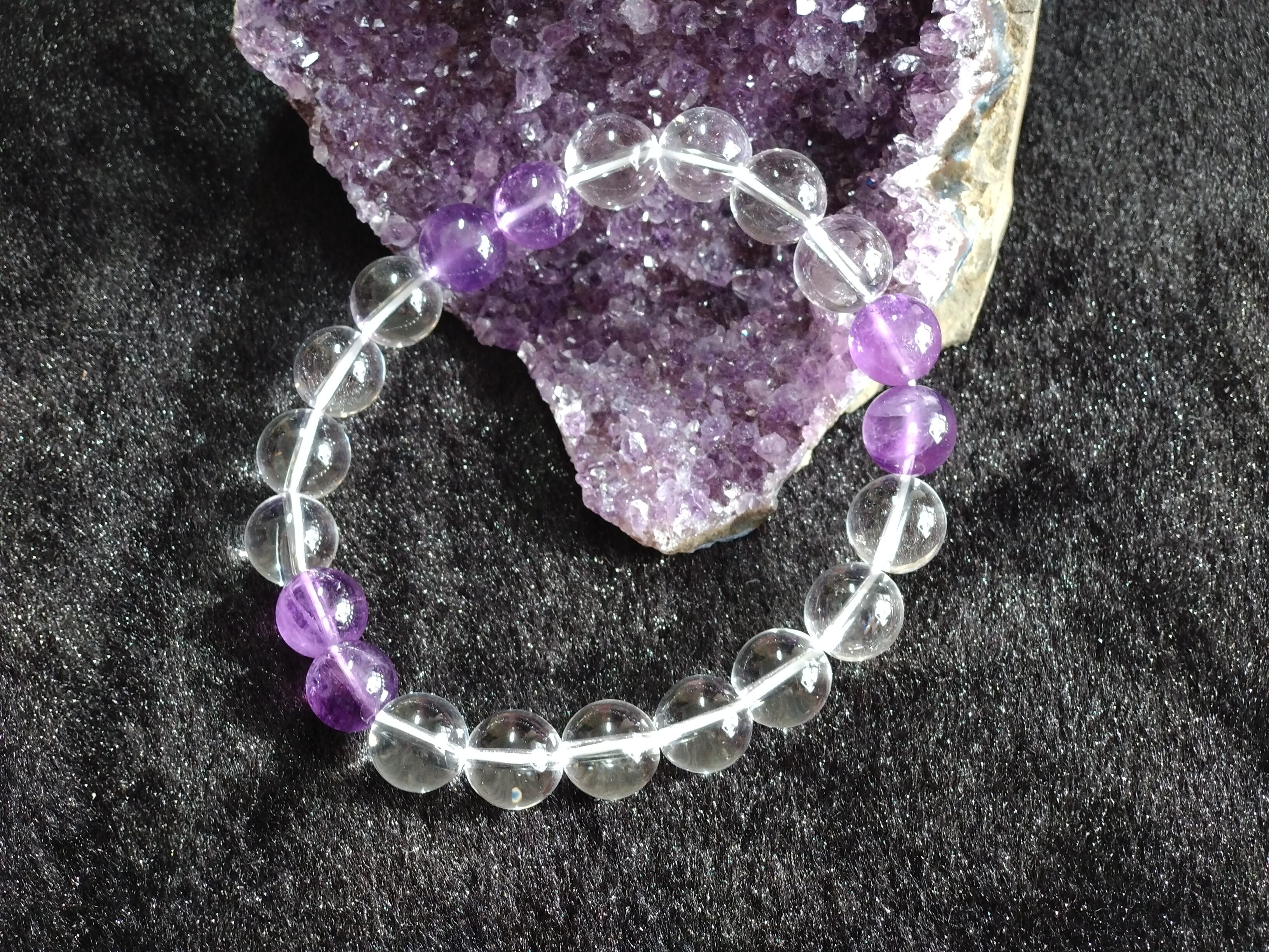 万能な石である水晶と癒しのアメジストのMIXブレスレットになります。