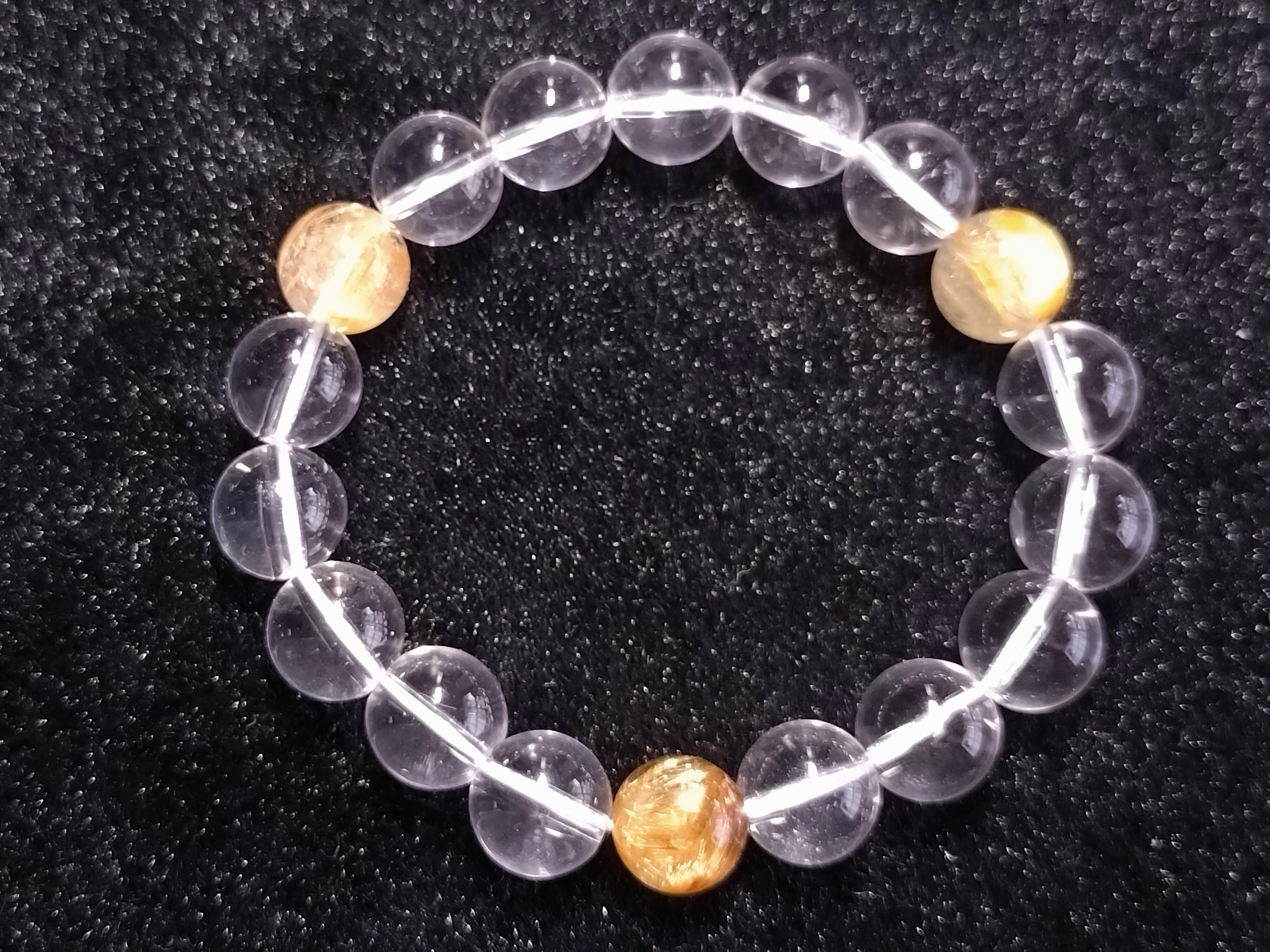 ゴールドルチルクォーツと水晶のMIXブレスレットになります。ブラジル産です。