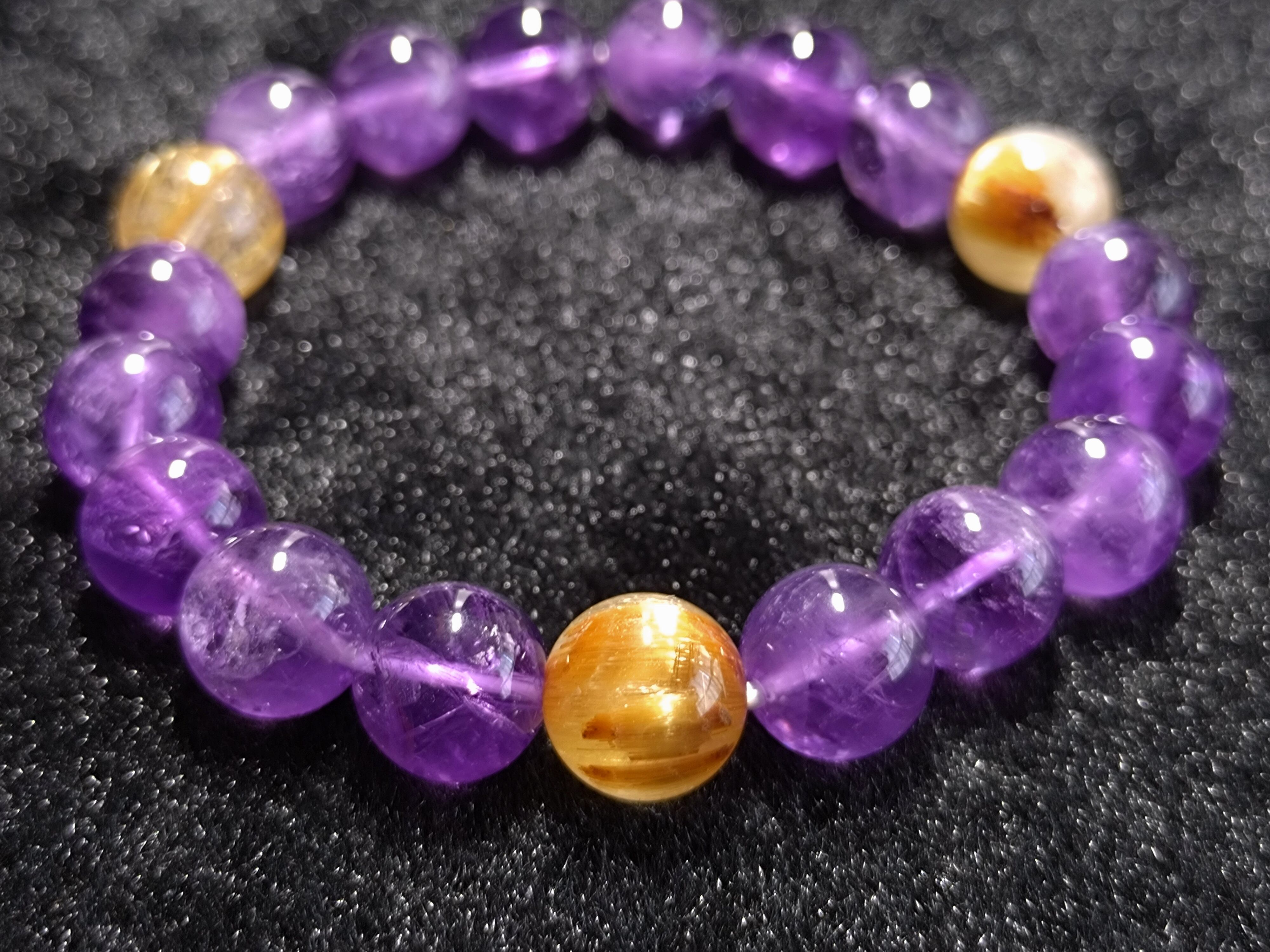 癒しのアメジスト・金運のルチルクォーツのMIXブレスレットになります。
