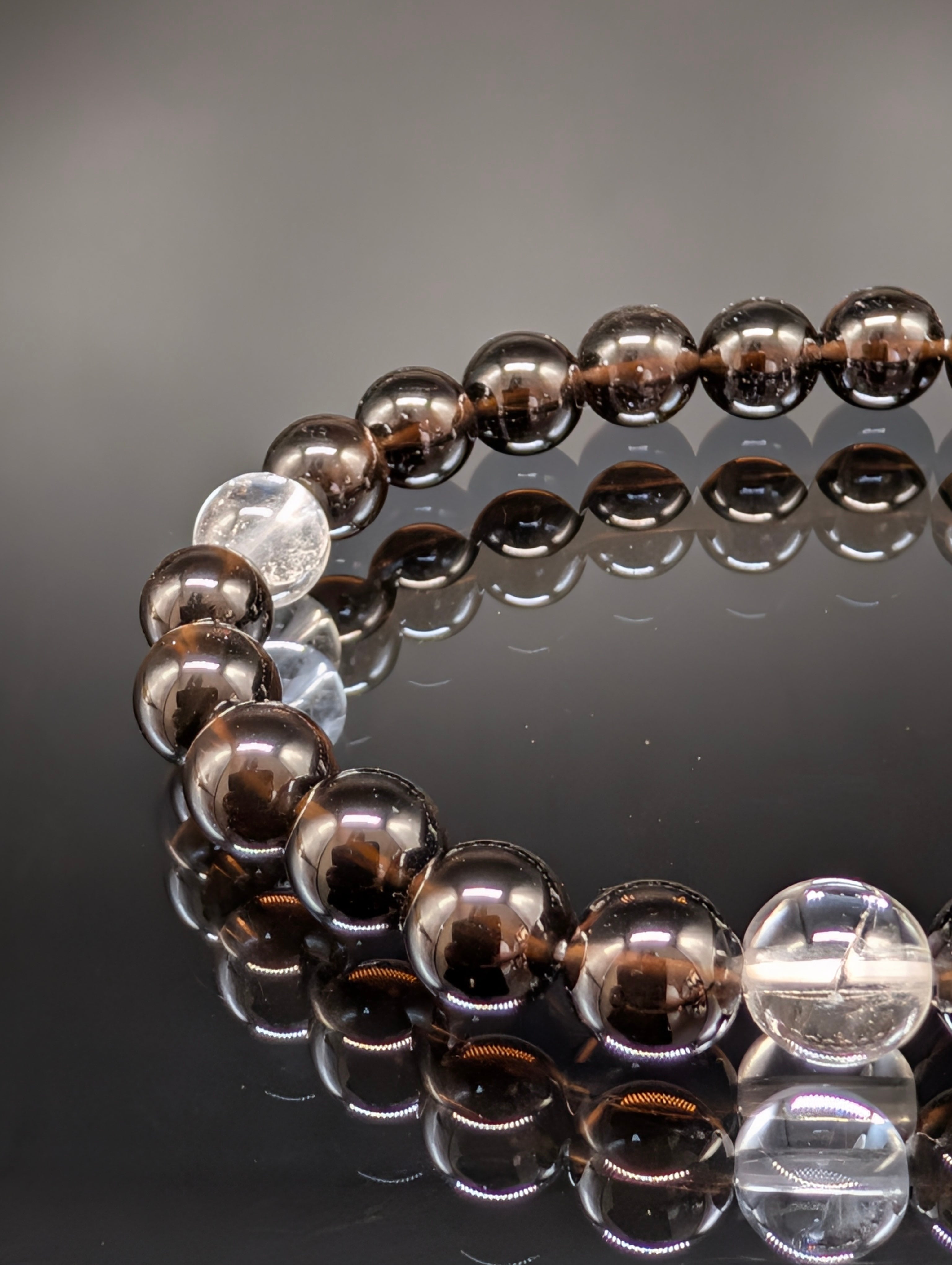 【パワーストーン】ヒマラヤ水晶・モリオン 8mm 3天・ブレスレット 【最高品質・鑑別済み・開運・守護・厄除け】