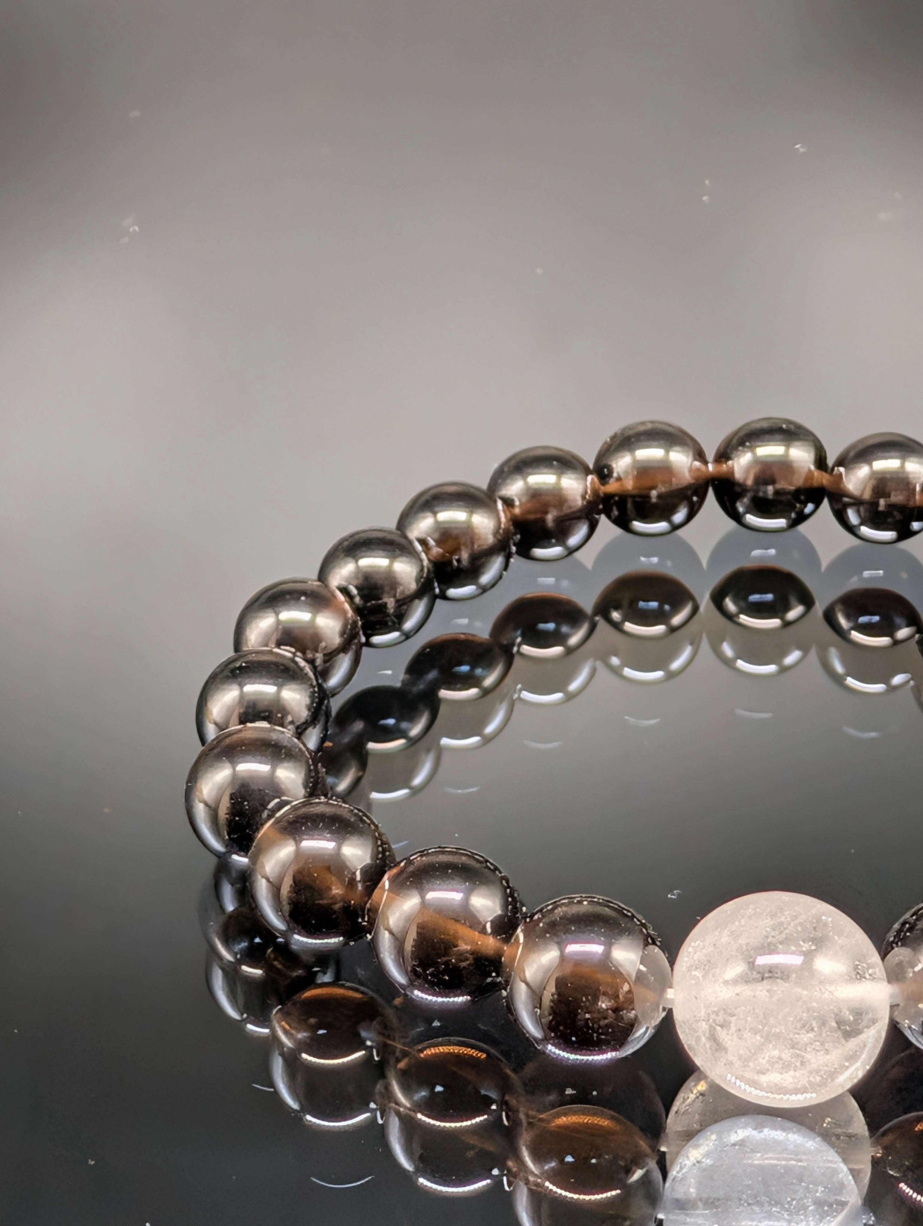 【パワーストーン】モリオン・ヒマラヤ水晶 8mm(親玉10mm)・最高品質・鑑別済み ブレスレット 【最高守護・厄除け・願望実現・開運】