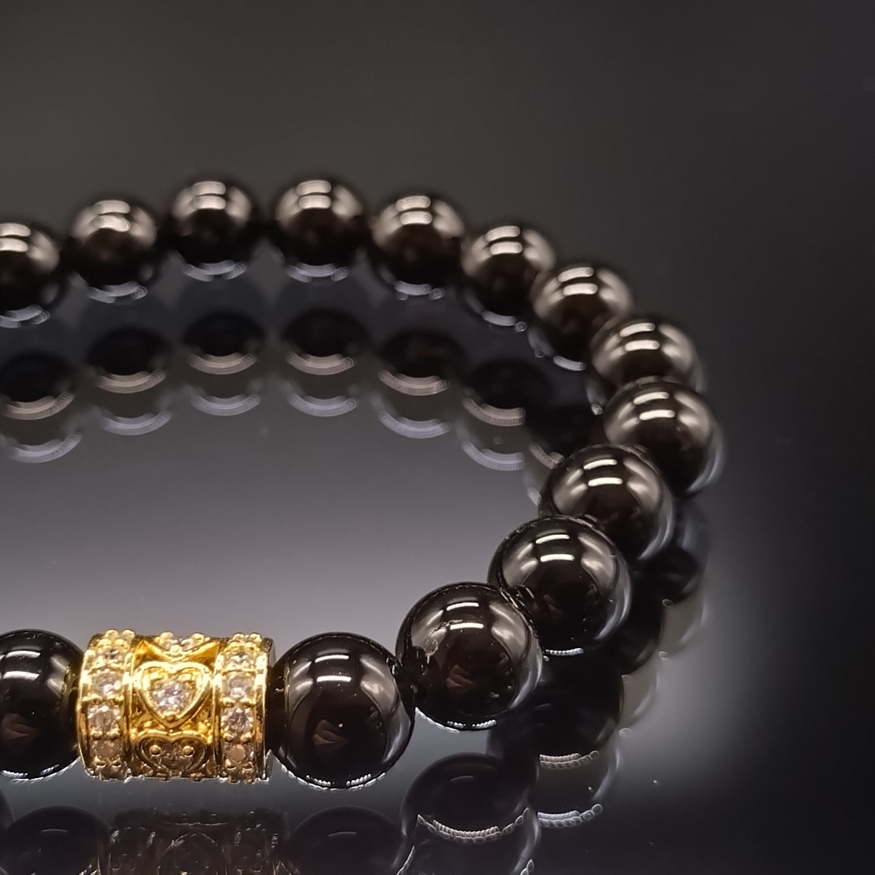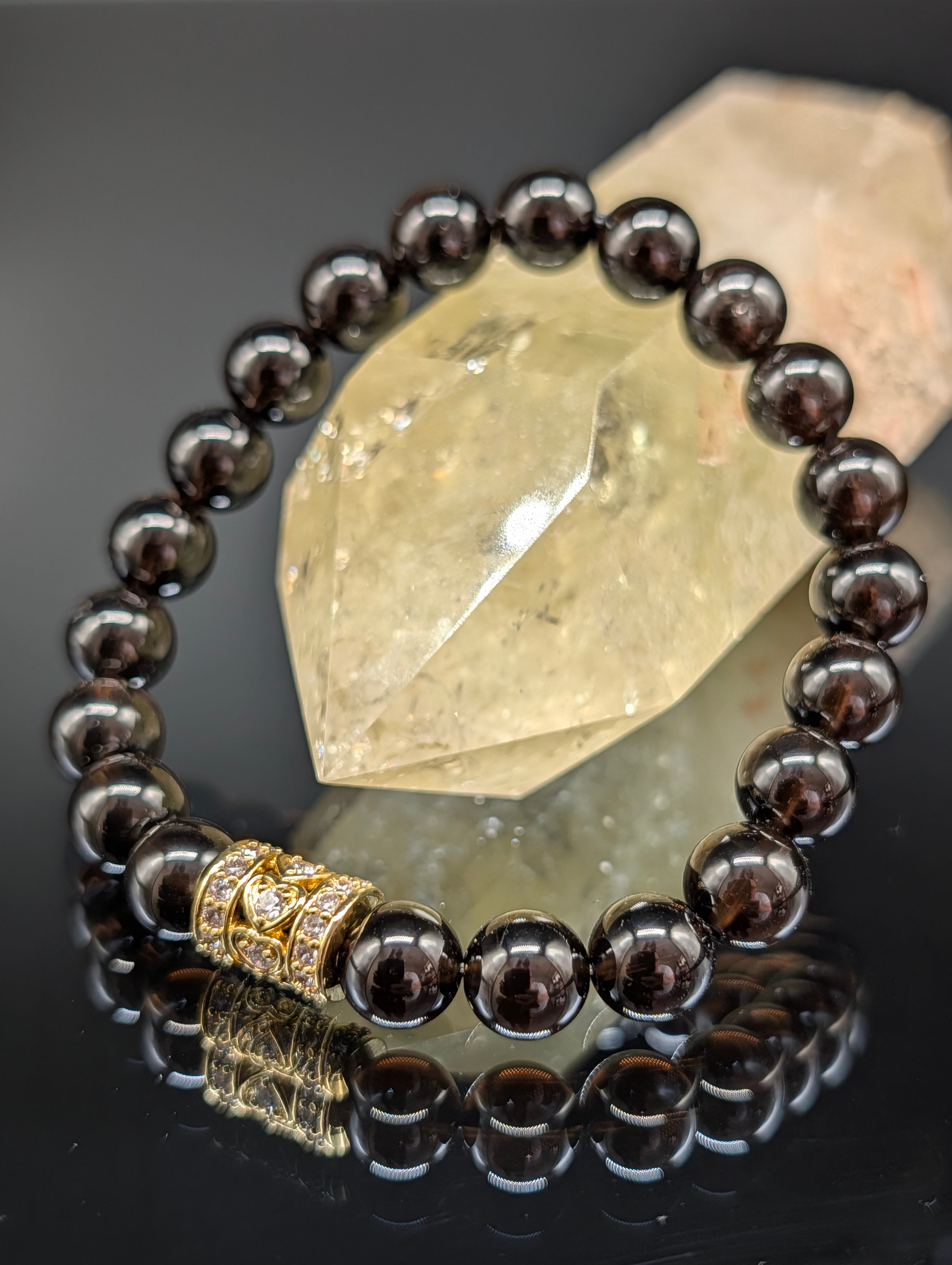 【パワーストーン】モリオン 8mm チベット産 (黒水晶)・ハートゴールドロンデル・ブレスレット 【最高品質・鑑別済み・守護・厄除け】