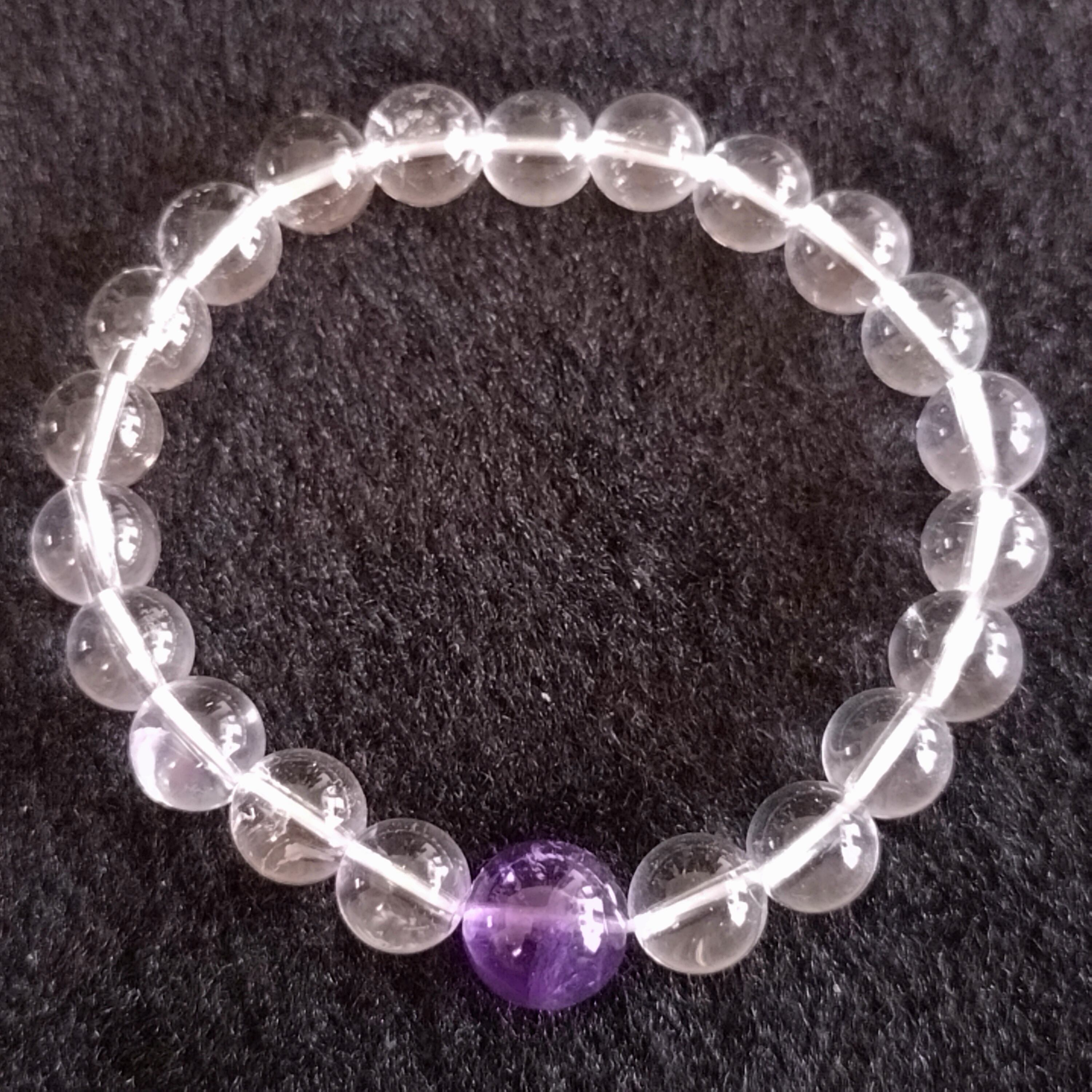 万能な石である水晶と癒しのアメジストのMIXブレスレットになります。アメジスト親玉10mmです。