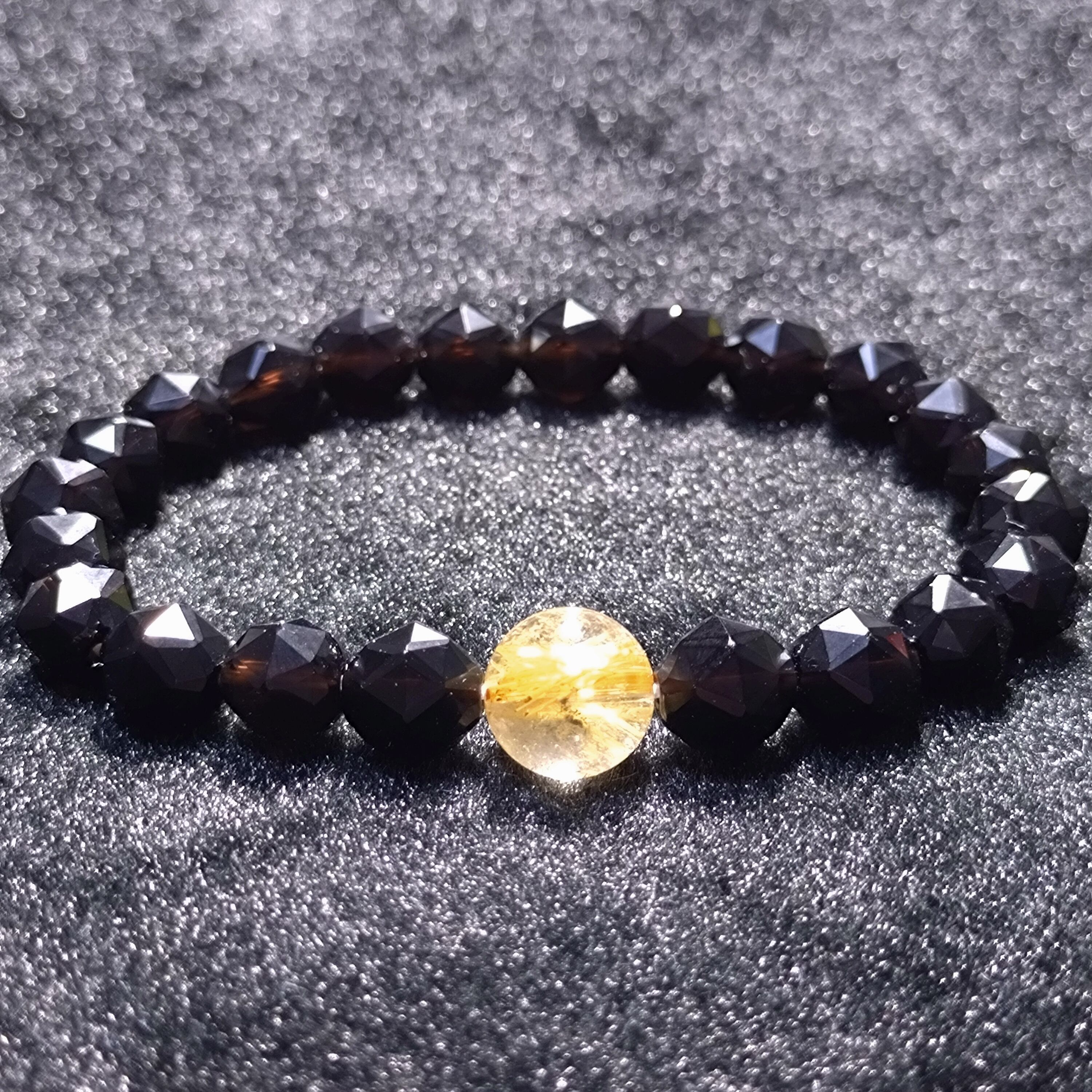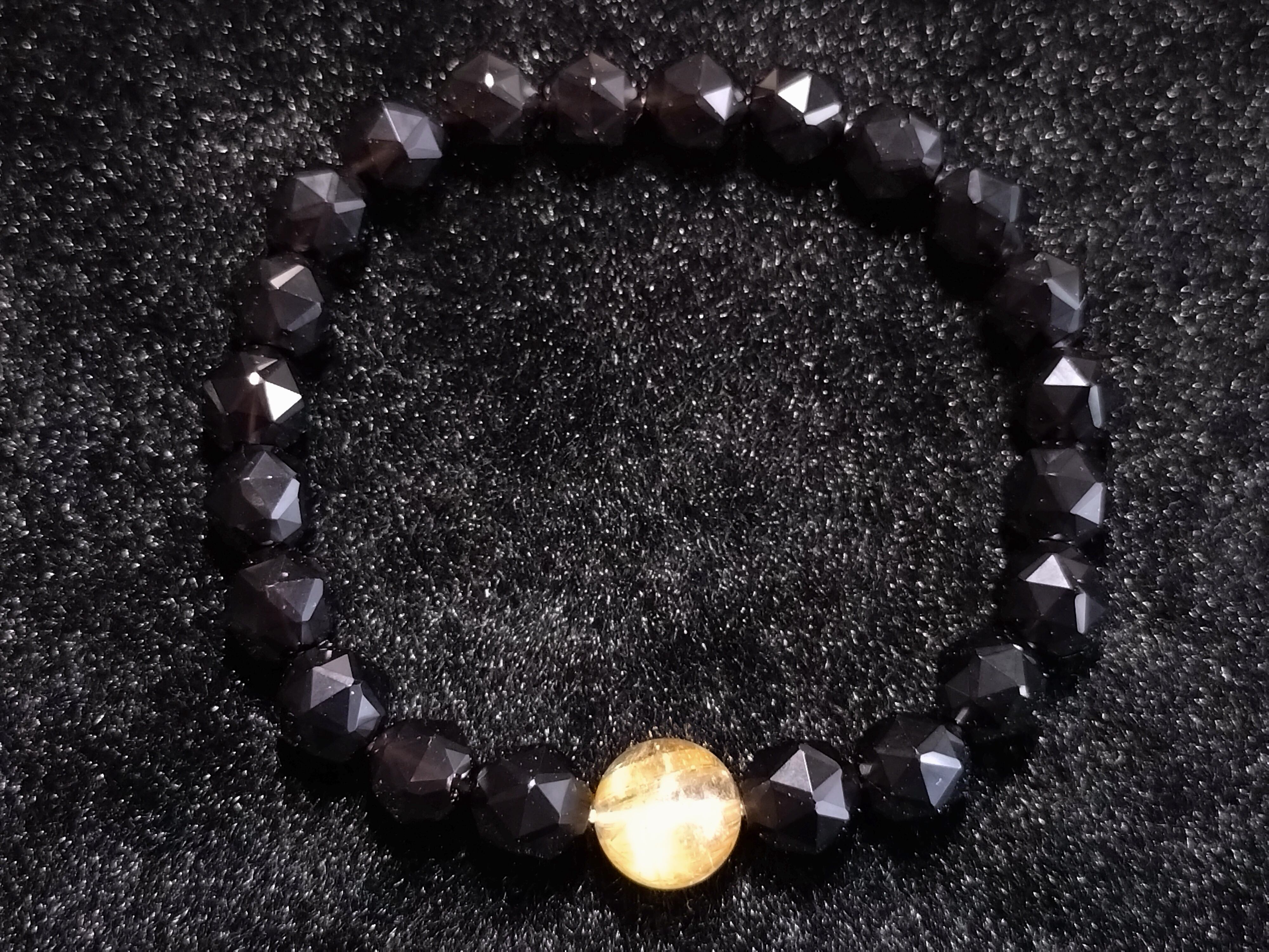 金運系の最高峰のルチルクォーツと、不幸を寄せ付けない魔除け系の最高峰のモリオンのMIXブレスレットです。 ルチルクォーツは10mmとなります。