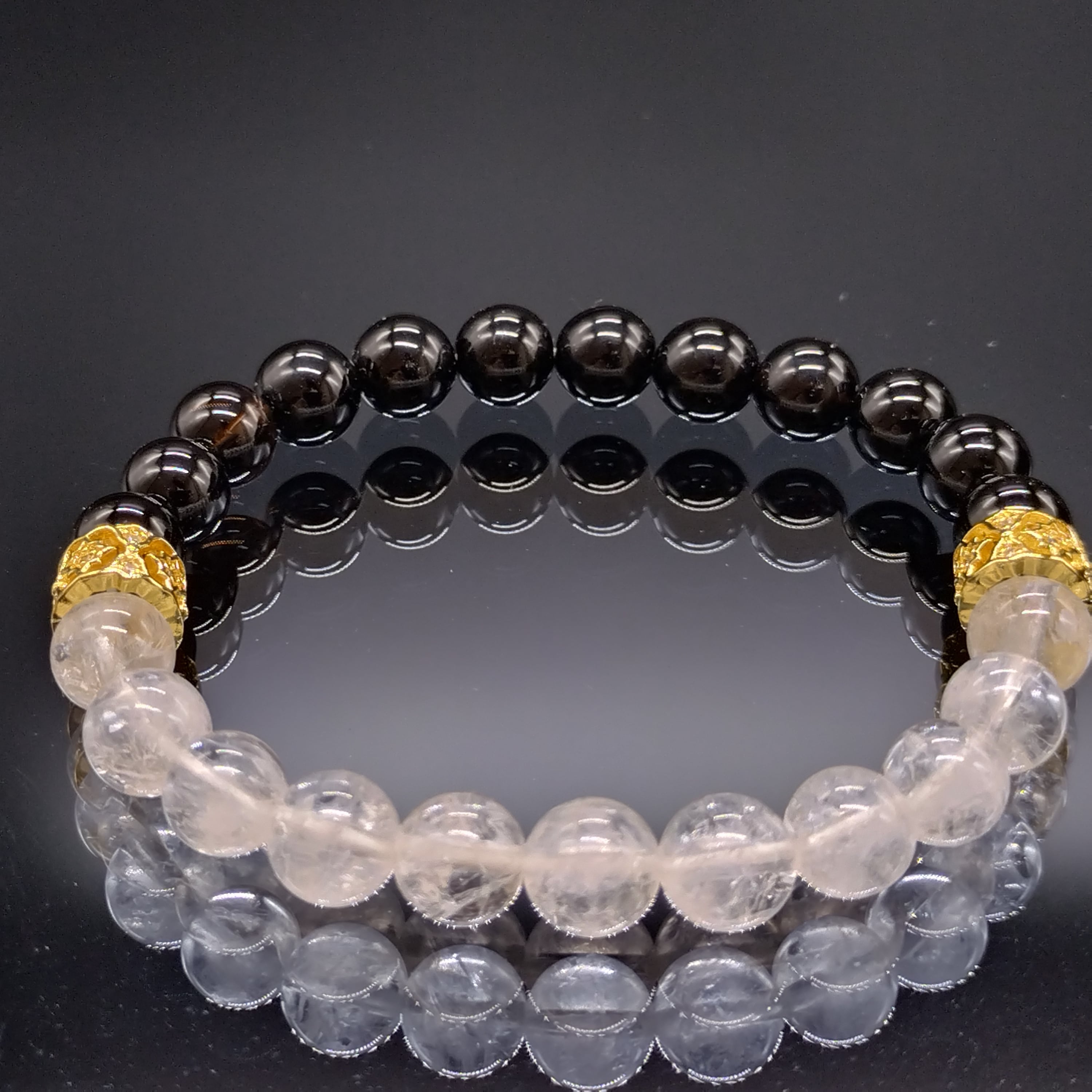 ヒマラヤ水晶とモリオンのMIXブレスレットです。チベット産になります。
