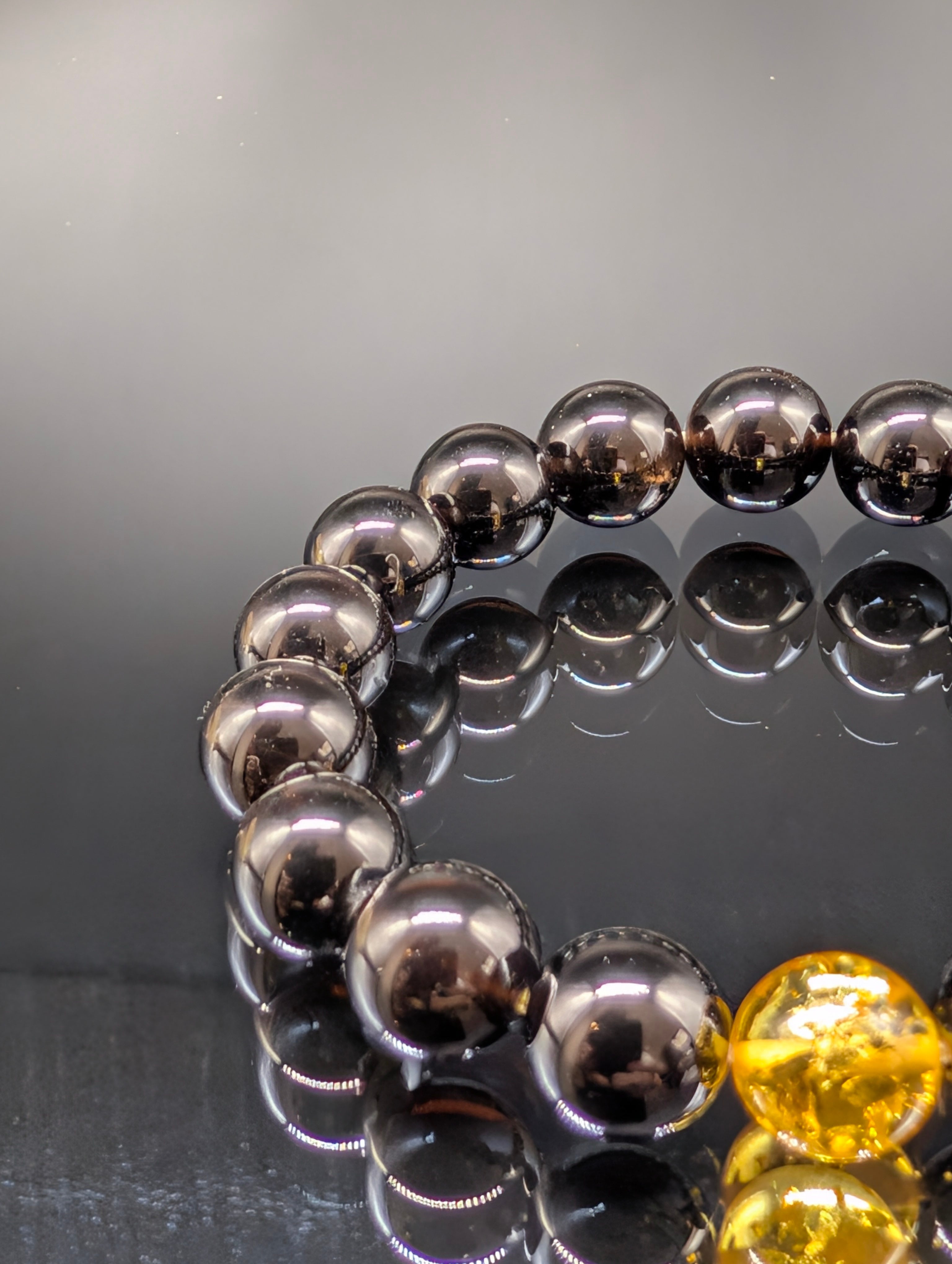 【パワーストーン】モリオン・アンバー(琥珀) 10mm・ブレスレット 【高品質・健康・願望実現・金運・鑑別済み】