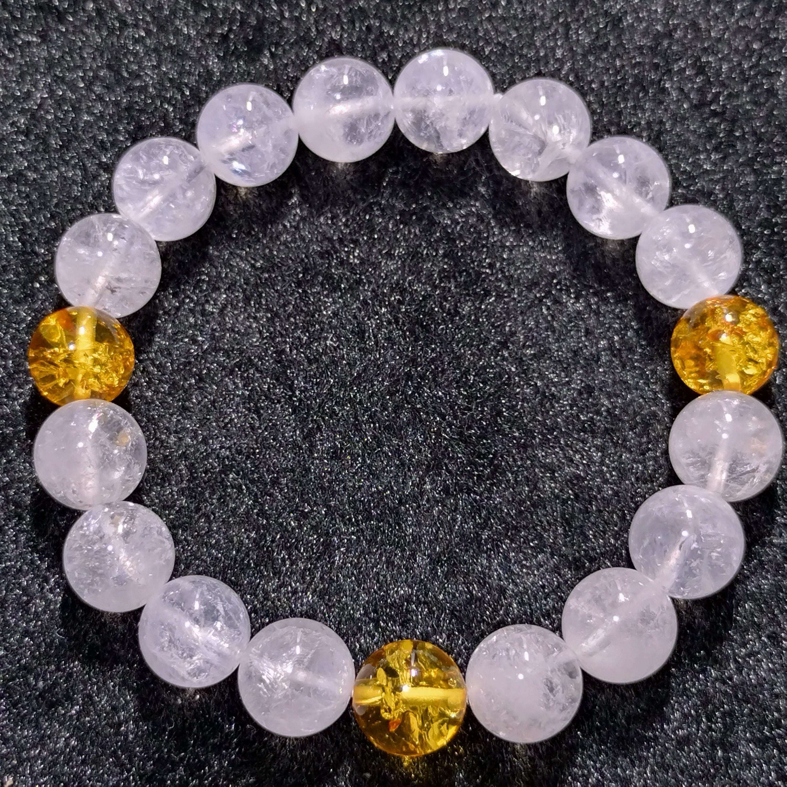 【高品質】アンバー琥珀・ヒマラヤ水晶 10mm 3天親玉・ブレスレット