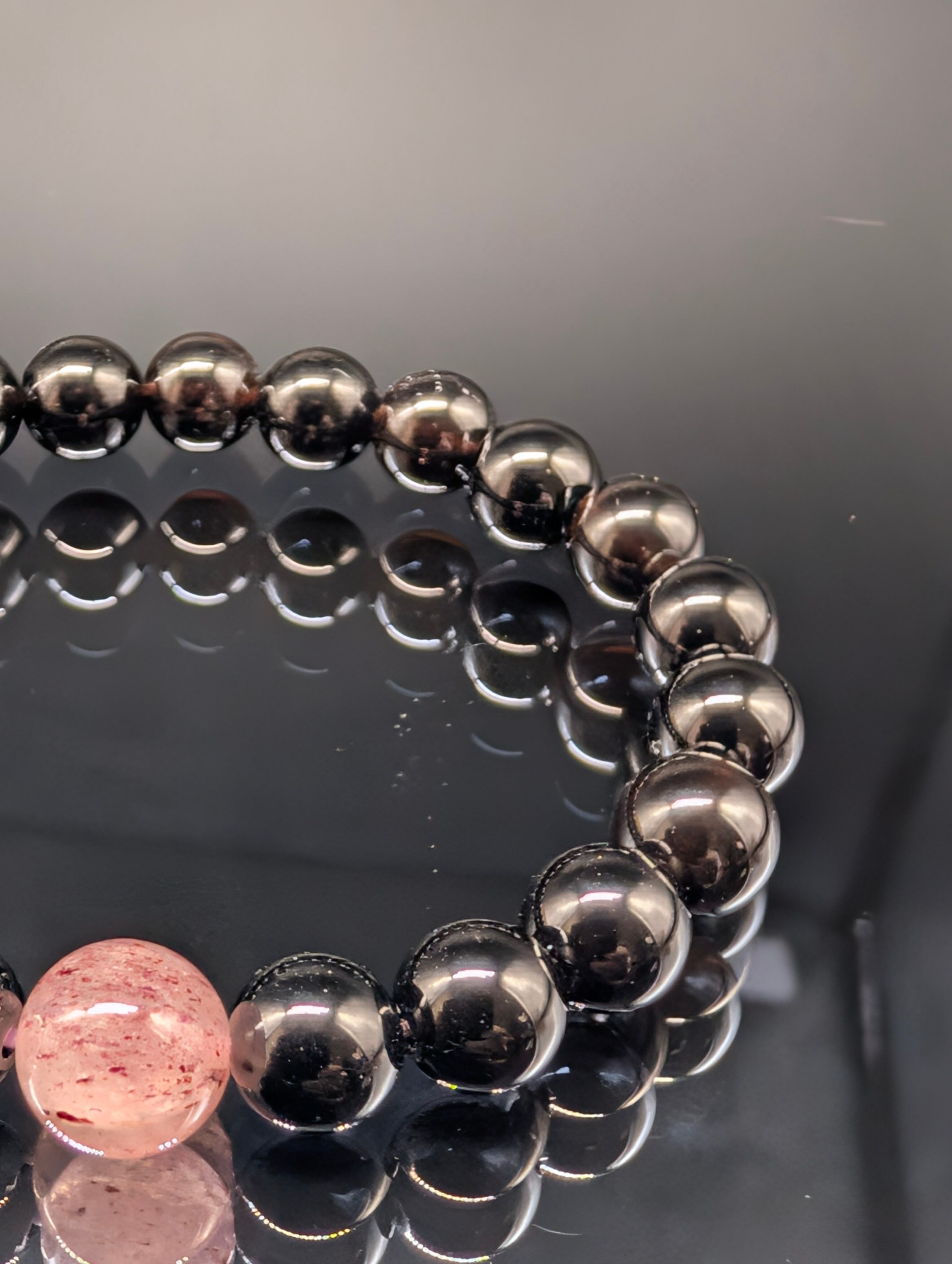 【パワーストーン】モリオン・ピンクエピドート 8mm(親玉10mm)ブレスレット 【高品質・鑑別済み・守護・良縁】