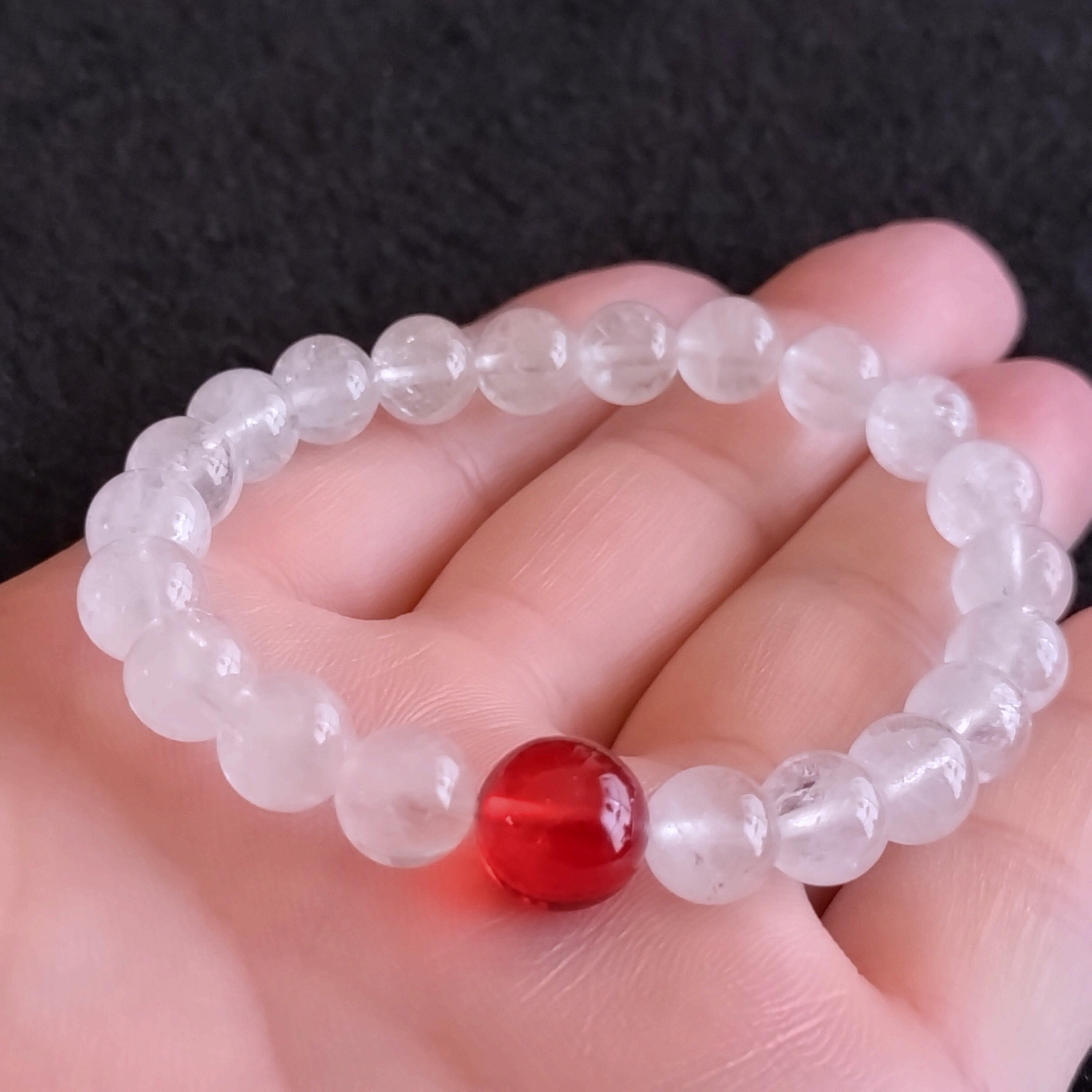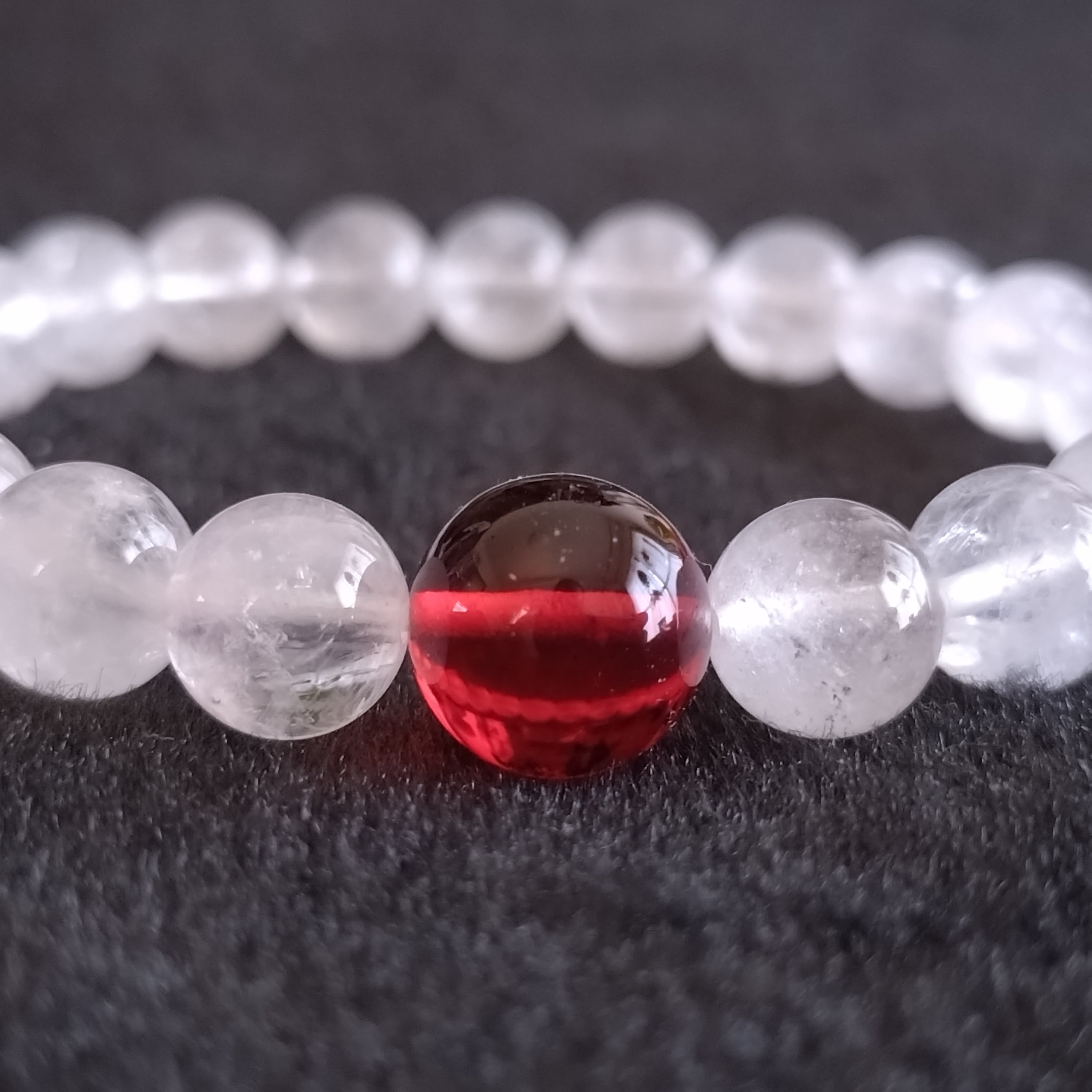 【高品質】ヒマラヤ水晶・レッドアンバー 8mm(親玉10mm)・ブレスレット