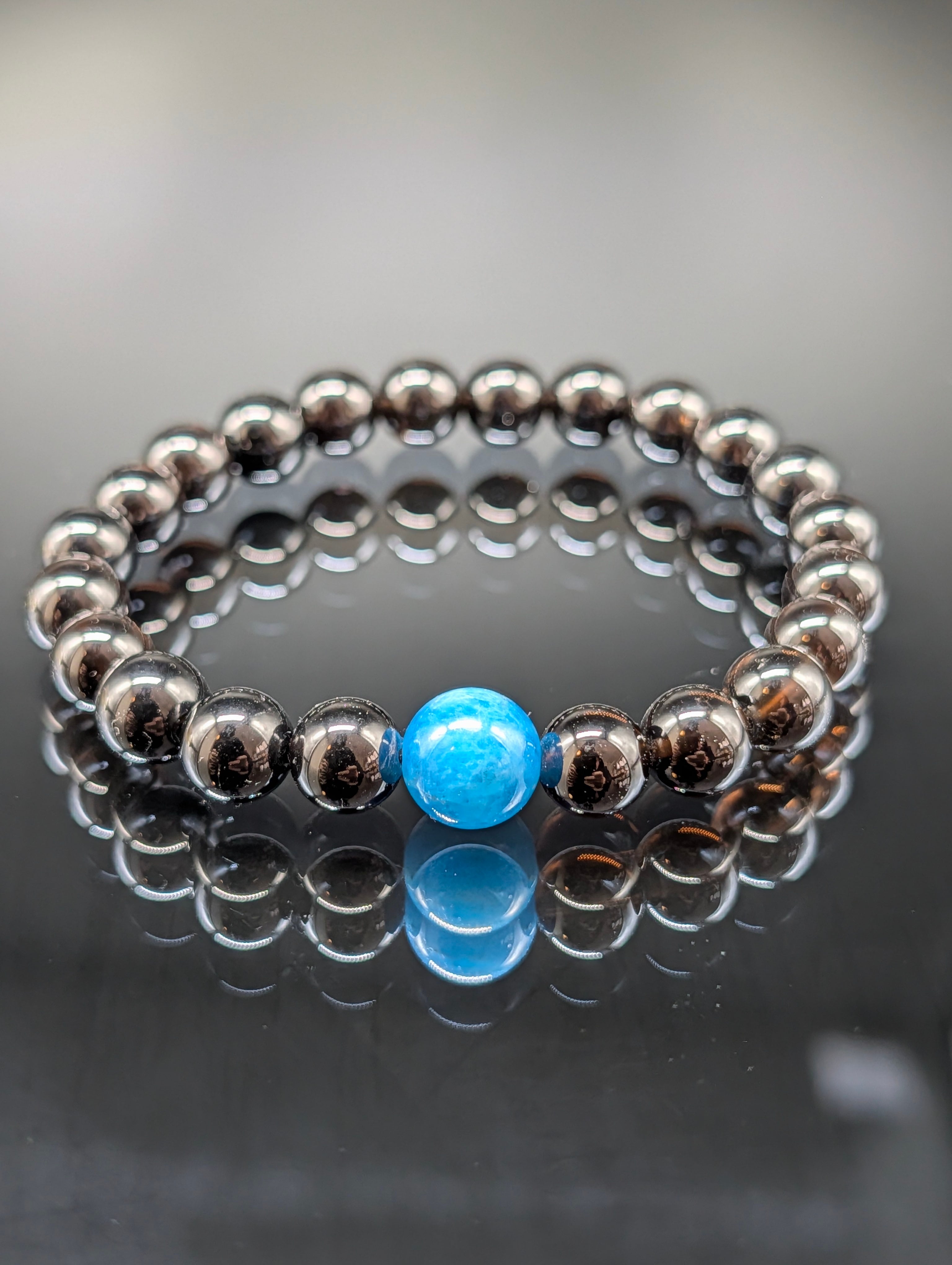 【パワーストーン】モリオン・ブルーアパタイト 8mm(親玉10mm)・ブレスレット 【最高品質・厄除け・守護・鑑別済み】