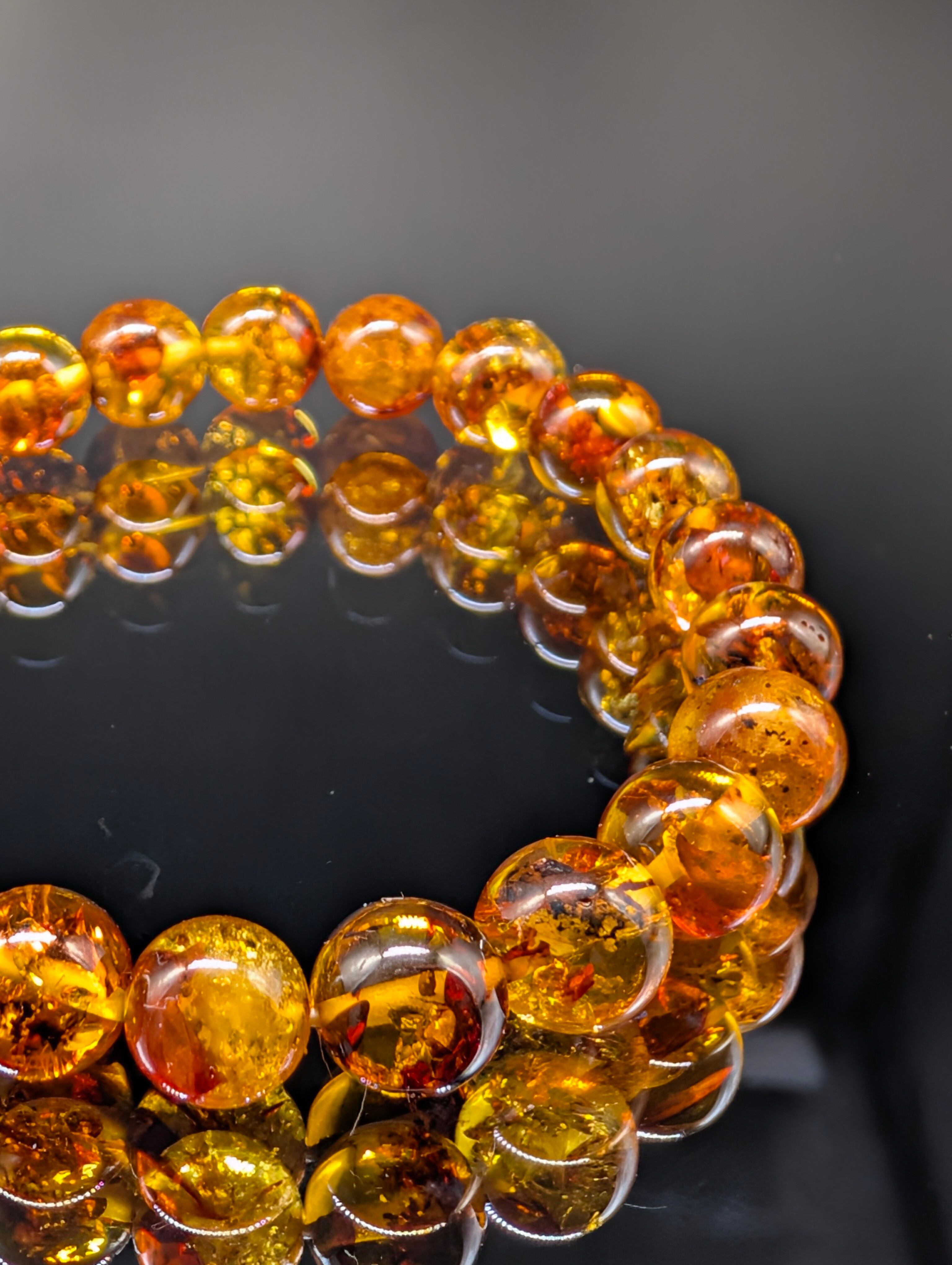 【パワーストーン】アンバー(天然琥珀) 8mm・ブレスレット【高品質・金運財運・健康・幸運】