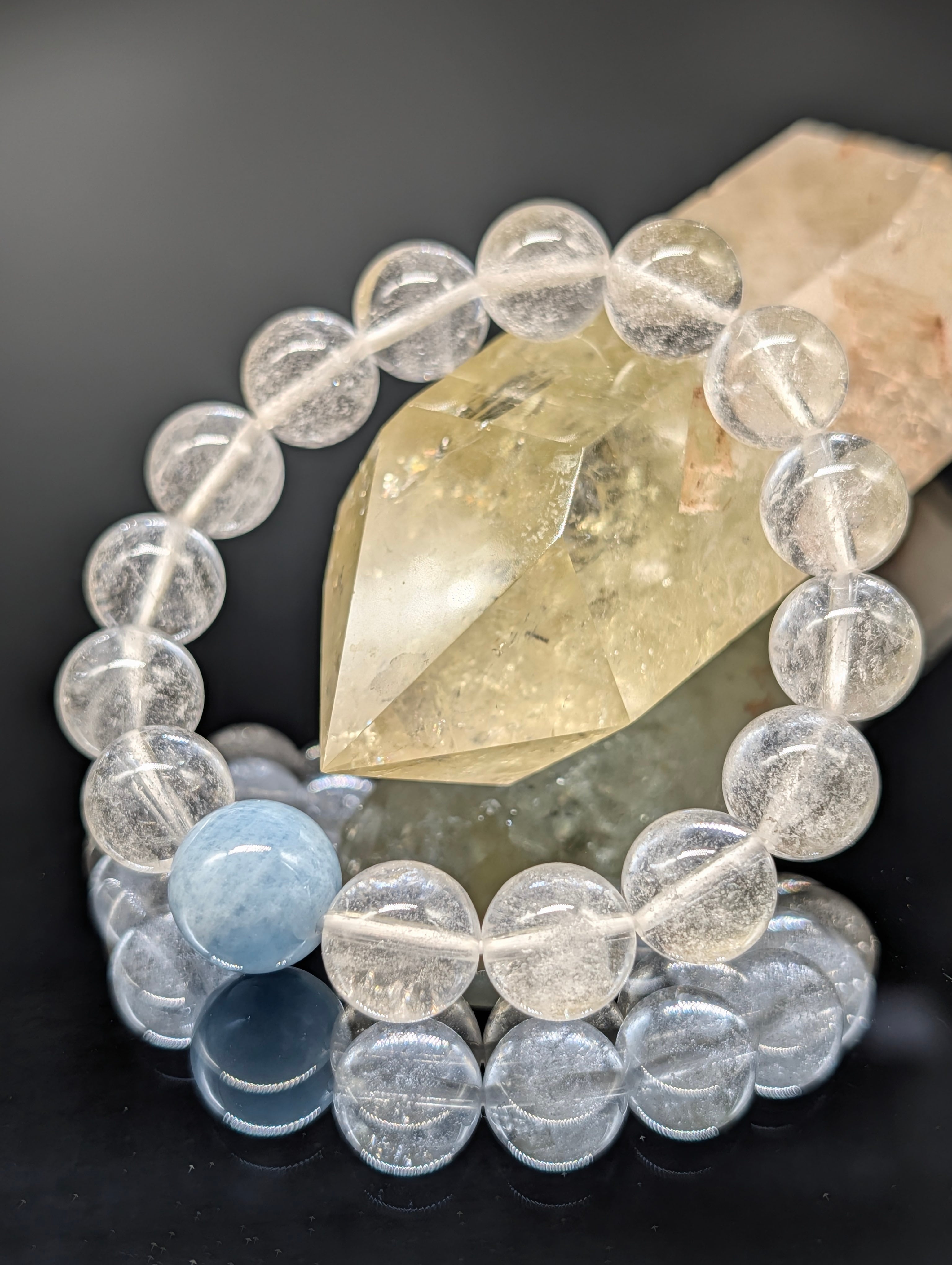 ありとあらゆる運気を強力に上げてくれると言われるヒマラヤ水晶と、喉や直感力、コミュニケーション、航海の安全を司るとされる、アクアマリンとの組み合わせです。