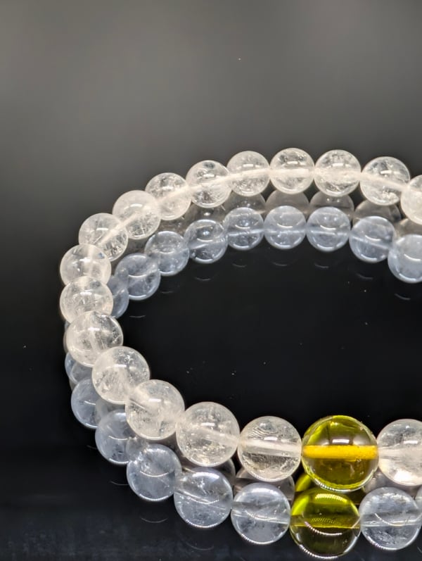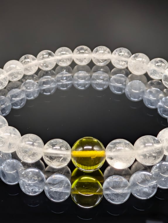 【パワーストーン】ヒマラヤ水晶・グリーンアンバー(天然琥珀) 8mm(親玉10mm)・ ブレスレット 【高品質・金運上昇・健康】