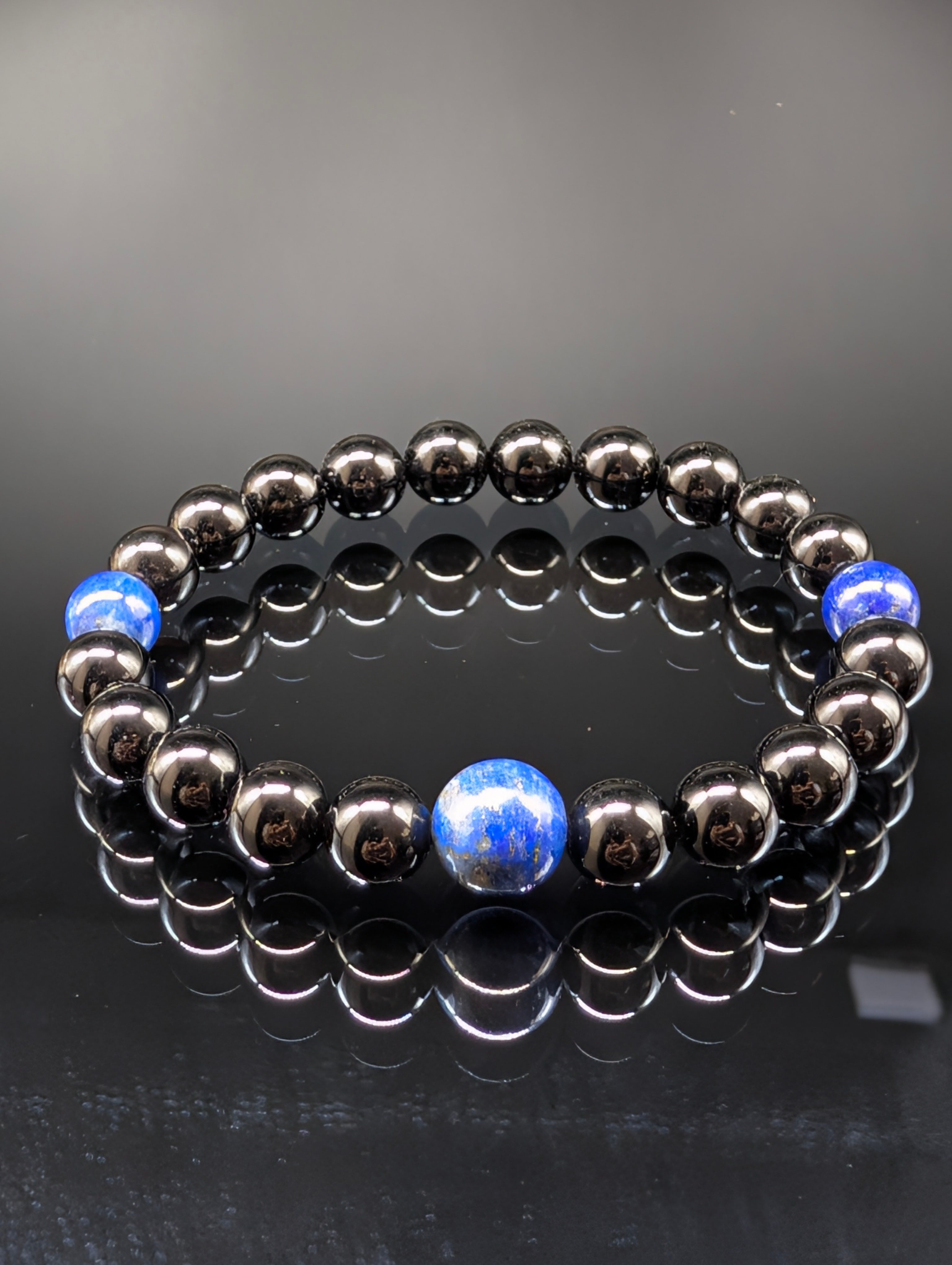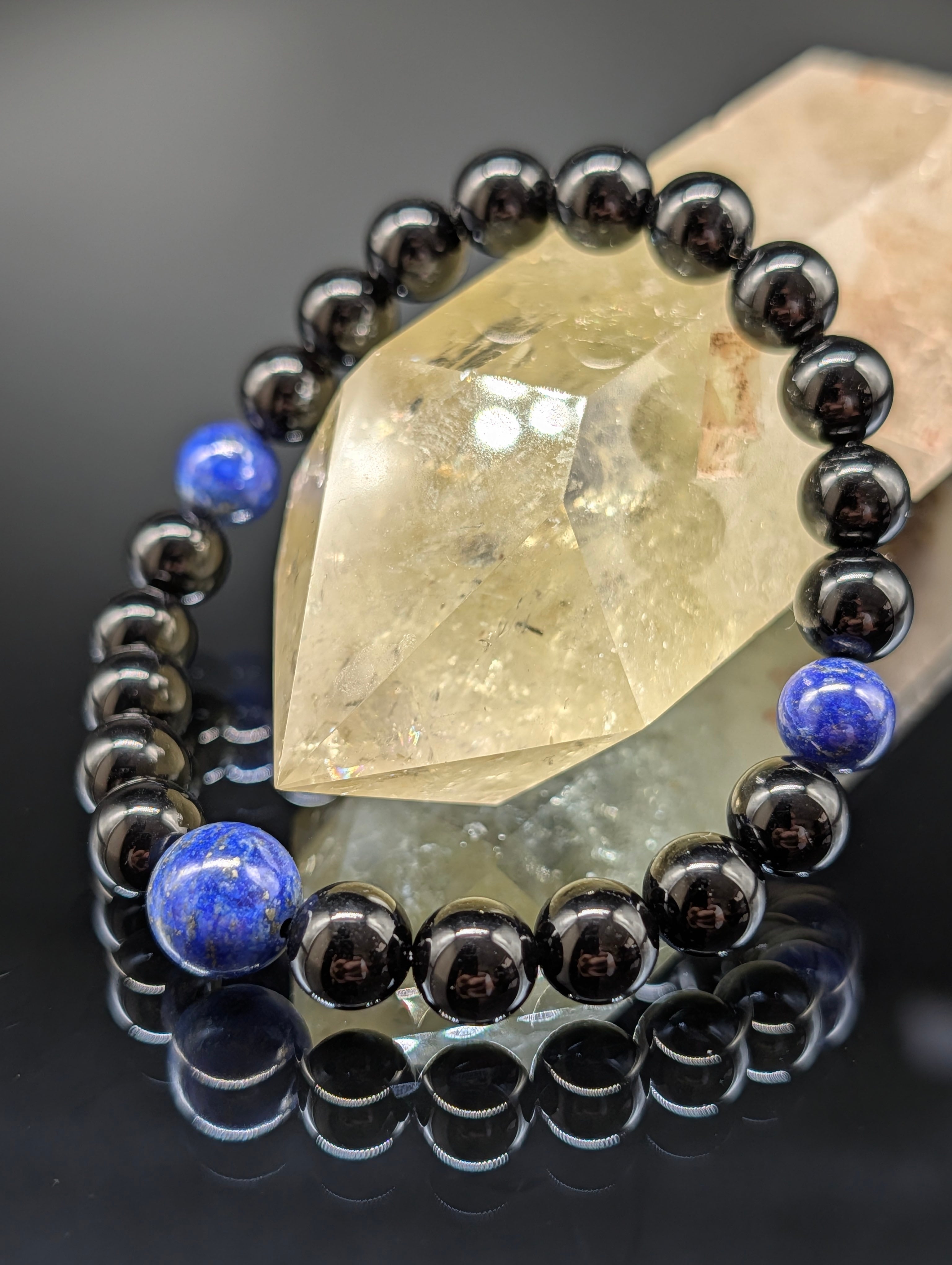 【パワーストーン】モリオン・ラピスラズリ・ 8mm・2天(親玉10mm) ブレスレット 【最高品質・鑑別済み・守護・幸運引き寄せ】