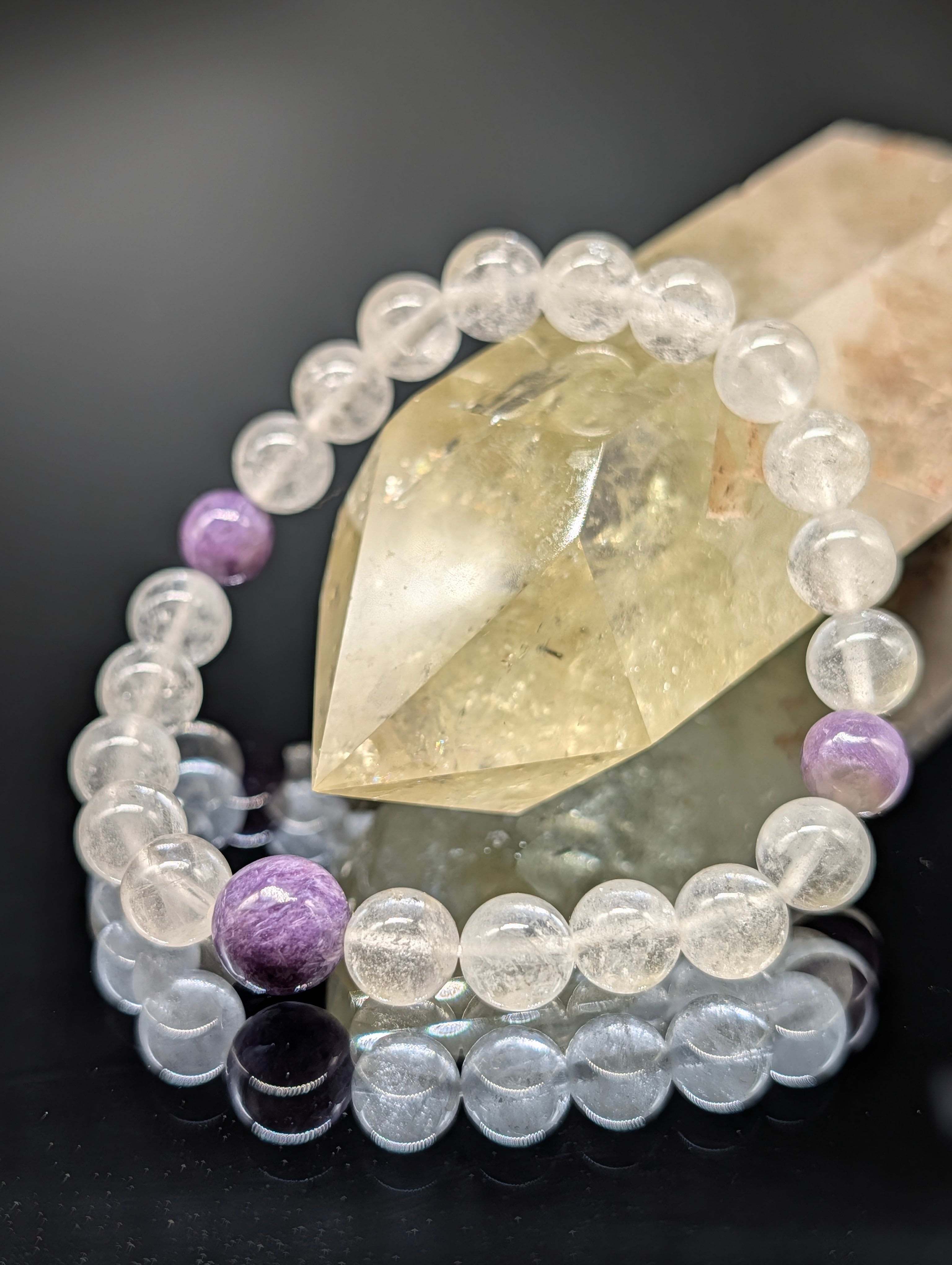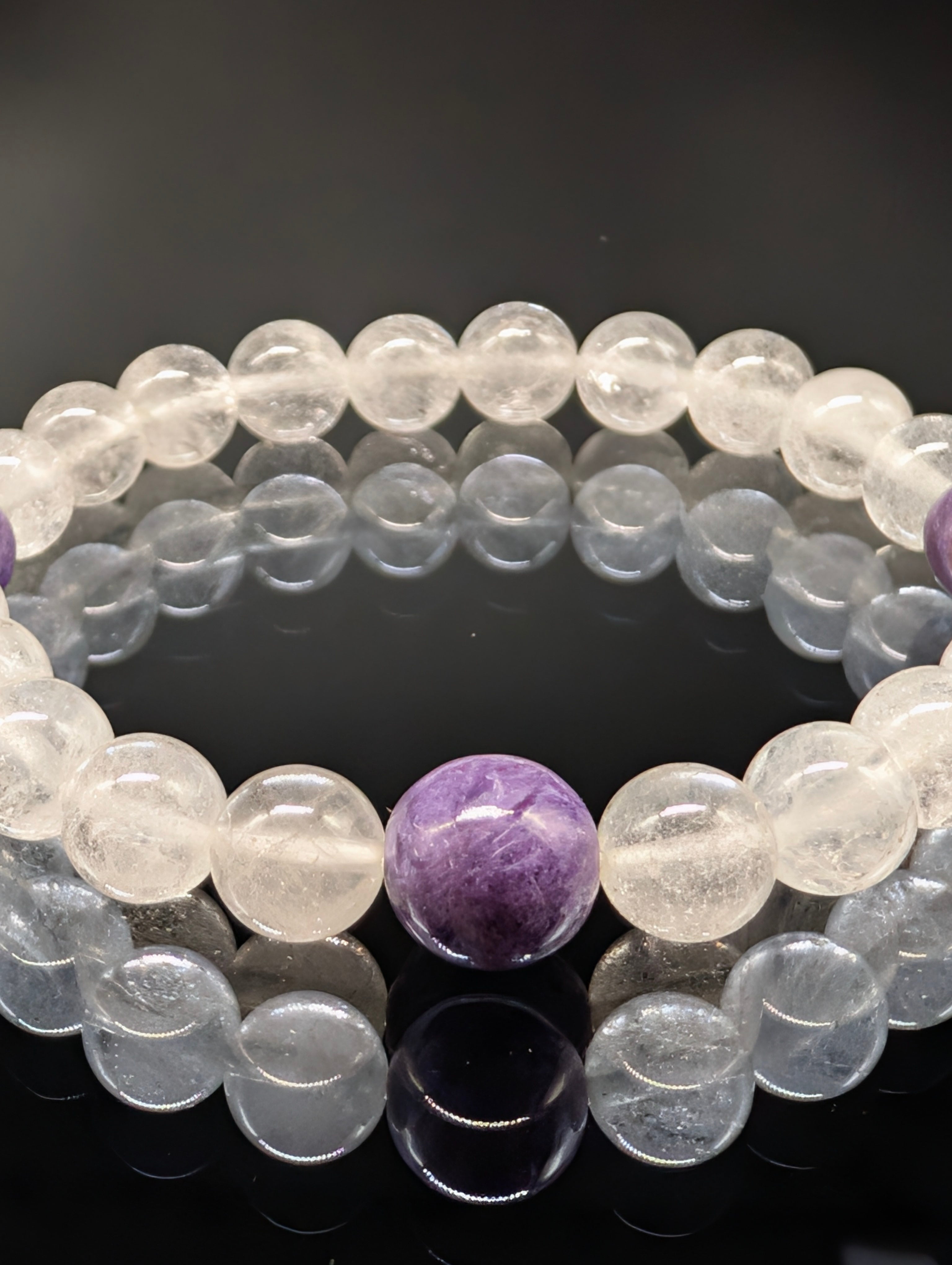 【パワーストーン】ヒマラヤ水晶・チャロアイト・8mm(親玉10mm)・ブレスレット 【高品質・ヒーリング・開運・願望実現】