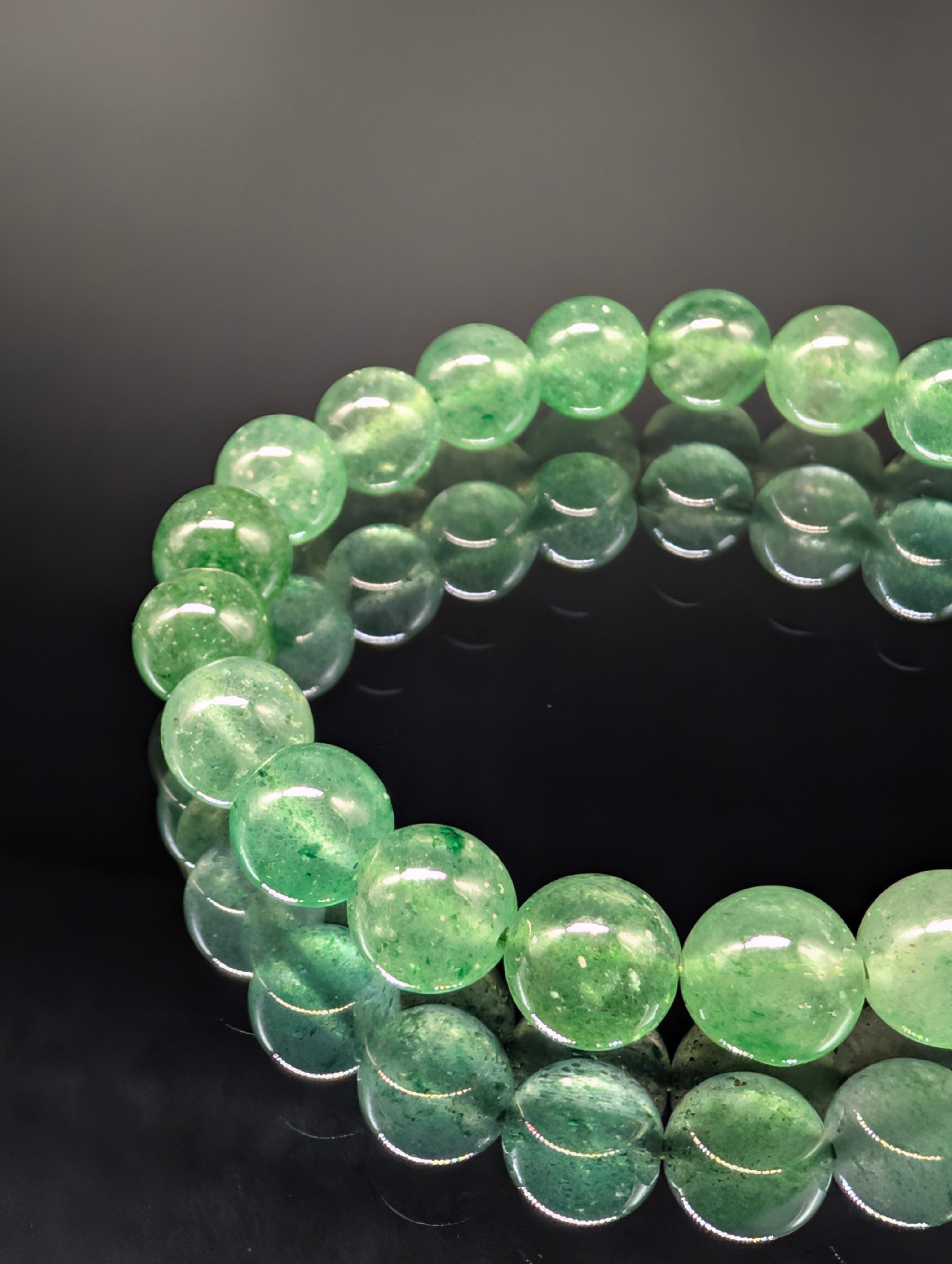アベンチュリンです。「リラックスの石」と呼ばれています。こちらは【高品質】タイプとなります。緑が濃くハイクオリティの品物です。