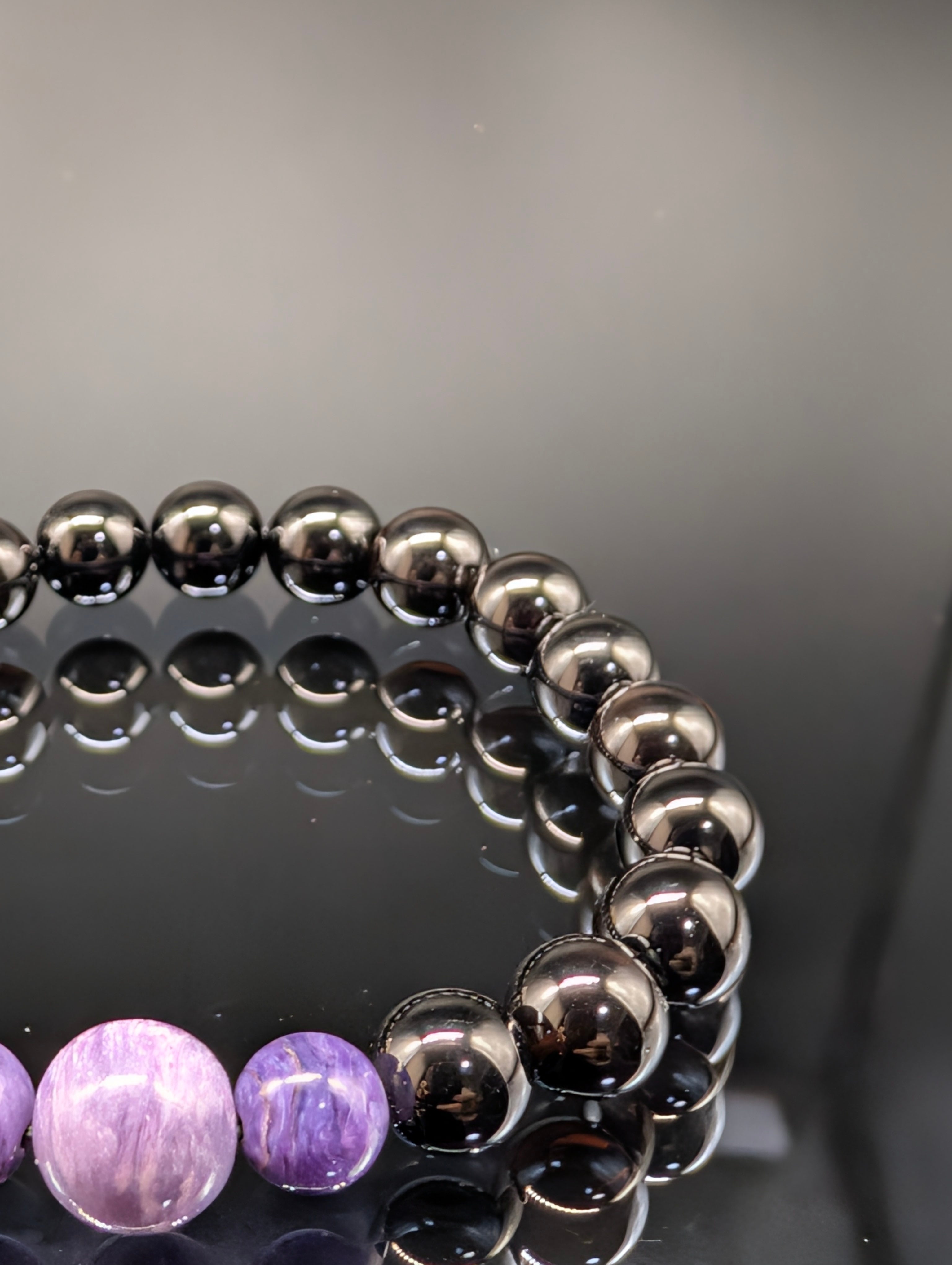【パワーストーン】モリオン・チャロアイト・8mm・3連(親玉10mm)・ブレスレット【最高品質・お守り・厄除け・癒し・鑑別済み】