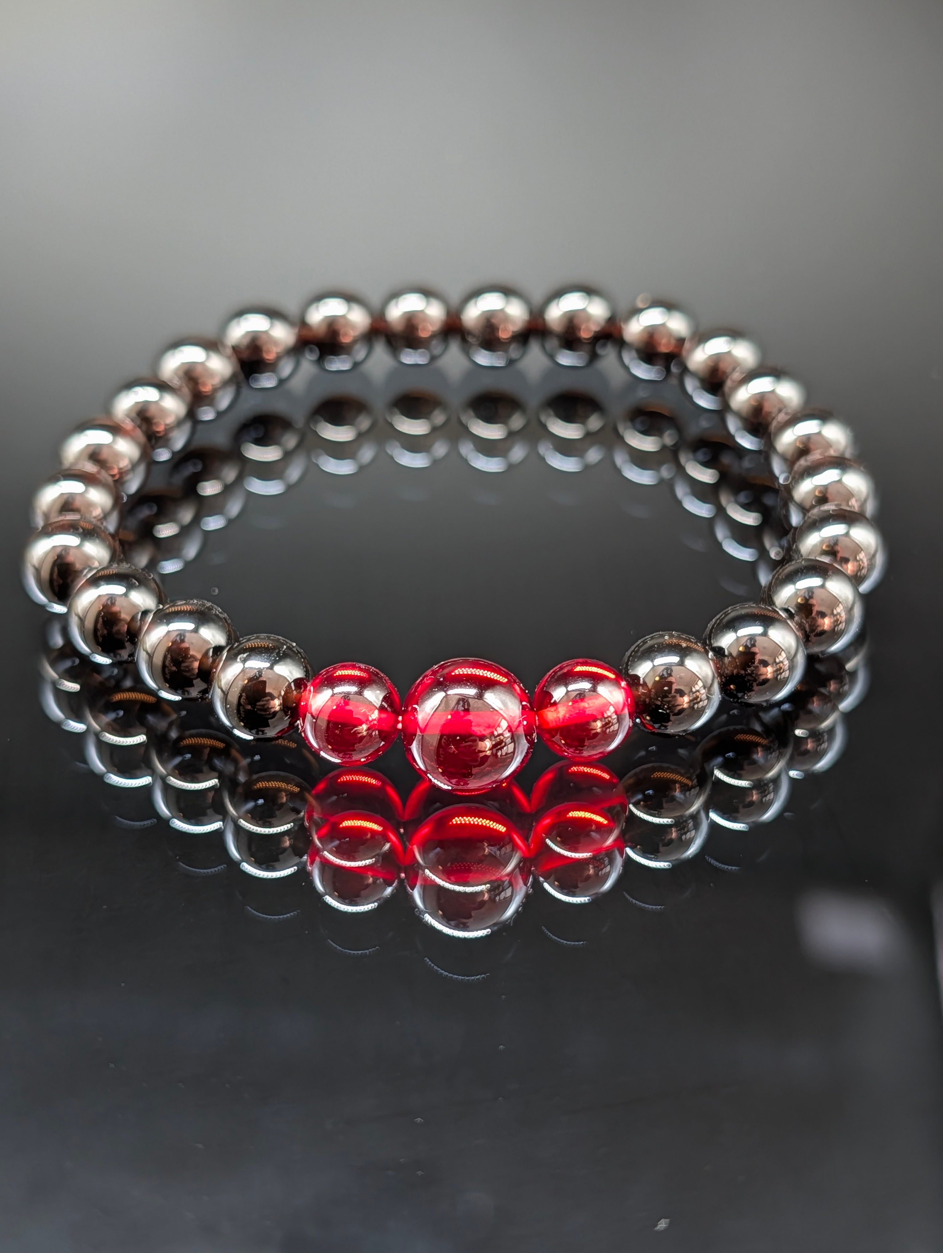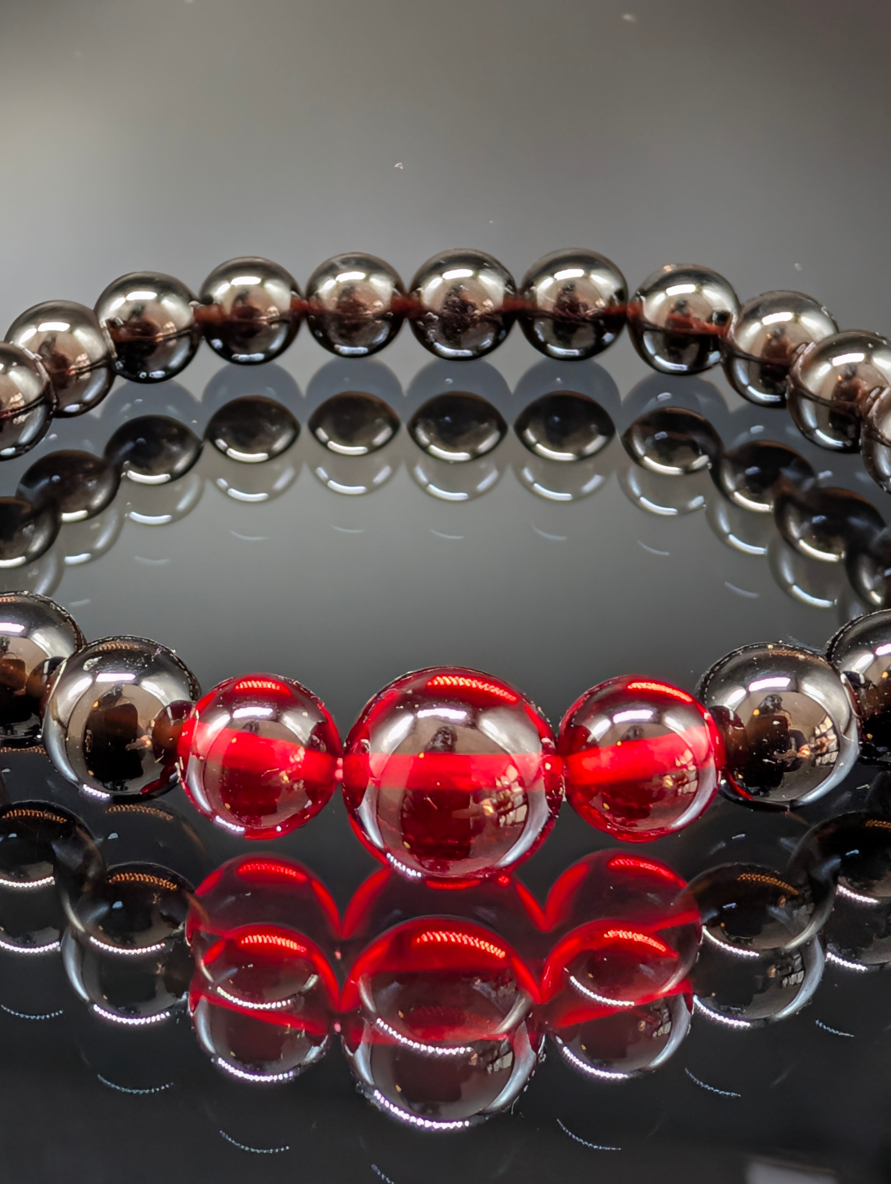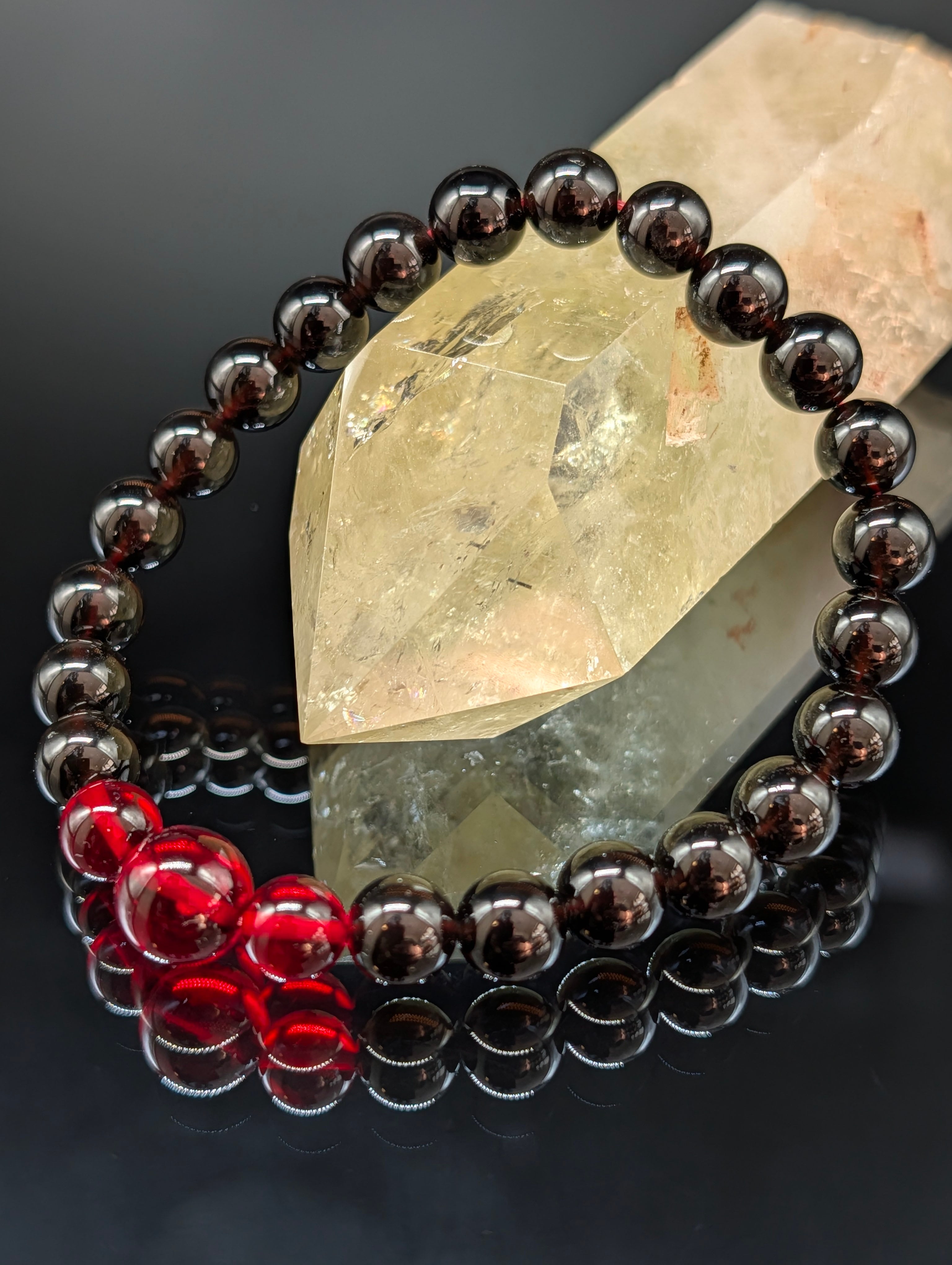 【パワーストーン】モリオン・レッドアンバー(天然琥珀) 8mm・3連(親玉10mm)ブレスレット 【高品質・鑑別済み・守護・金運・鑑別済み】