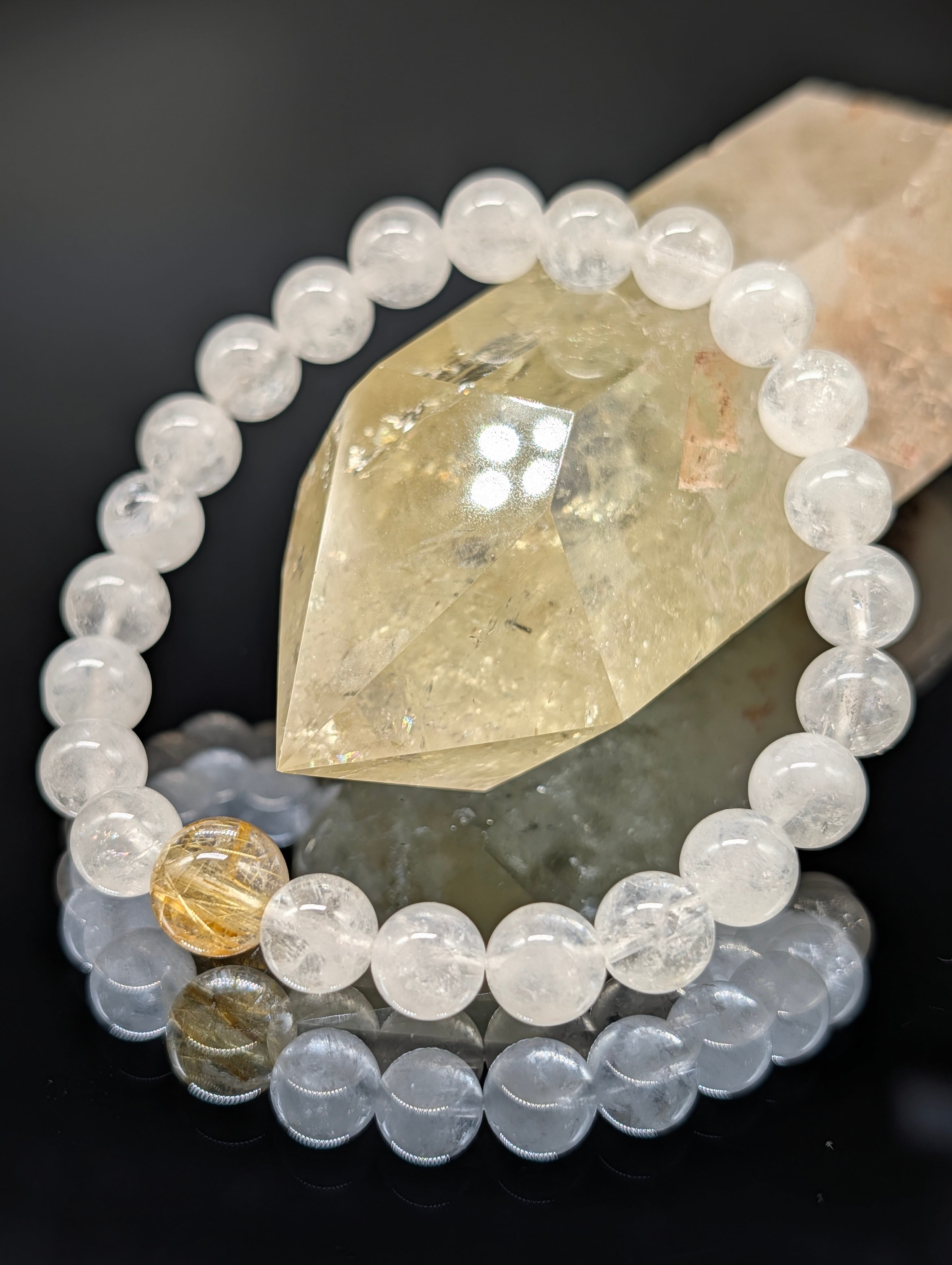 【パワーストーン】ヒマラヤ水晶・ルチルクォーツ 8mm(親玉10~11mm)5A・ブレスレット 【高品質・開運・金運財運・願望実現】